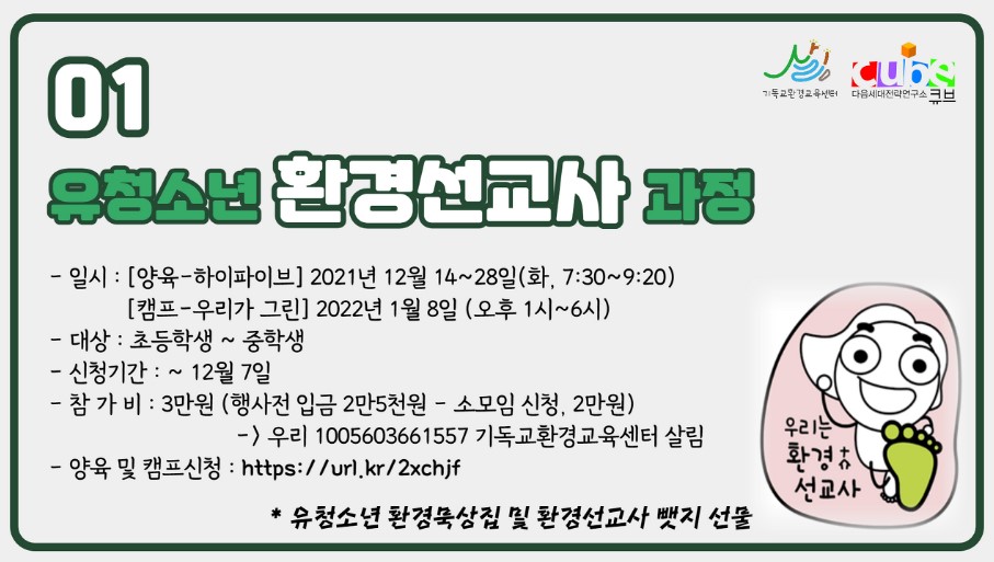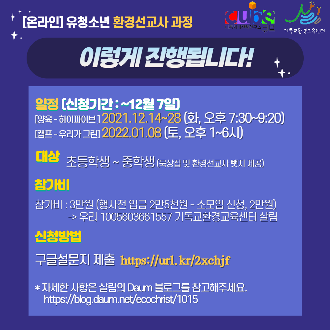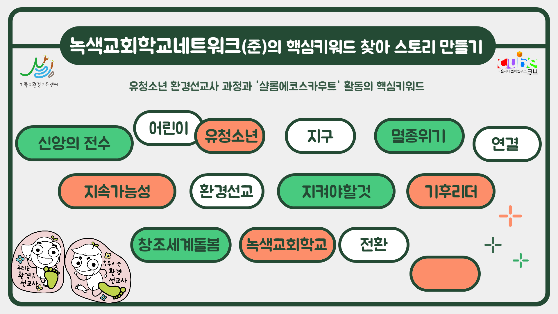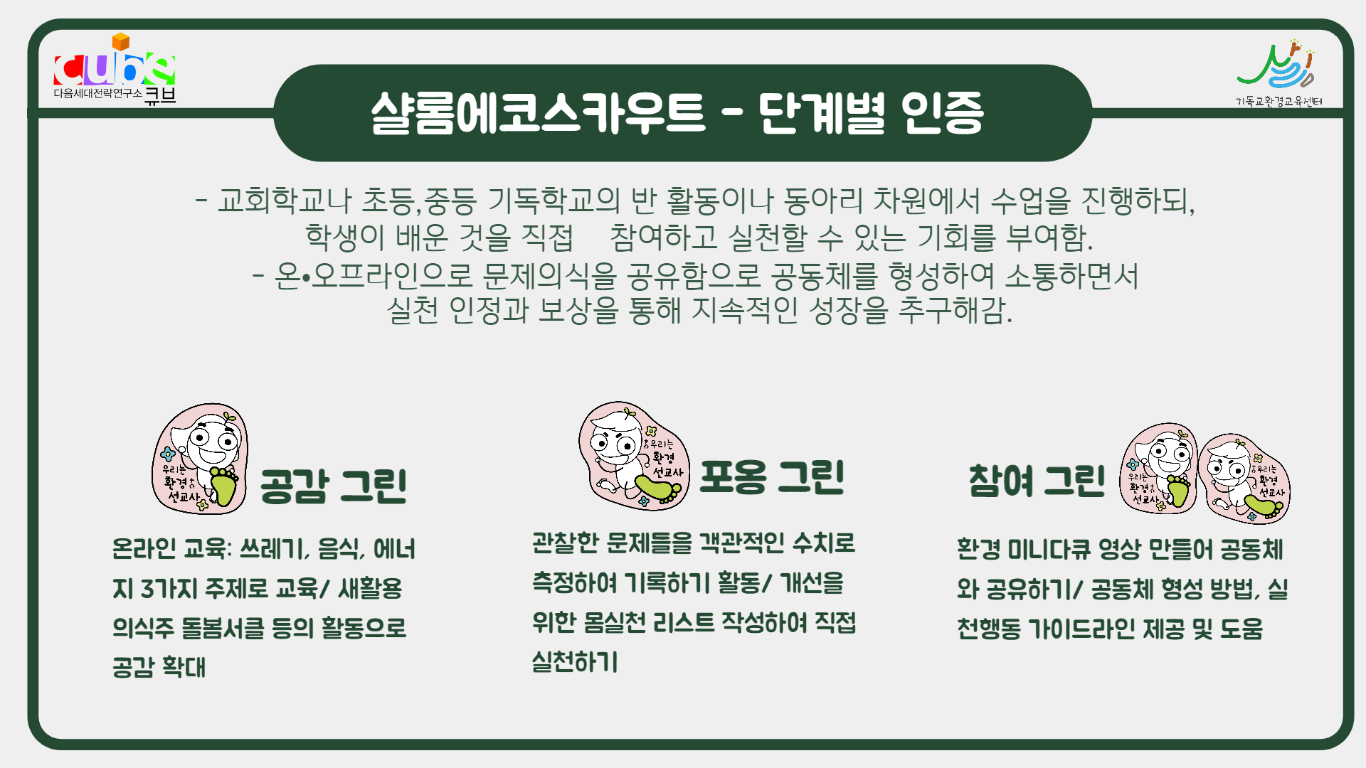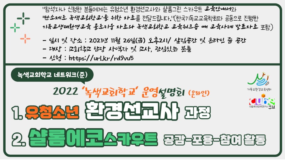 - 주최 : 녹색교회학교네트워크(준), 기독교환경교육센터_살림, 다음세대전략연구소 큐브