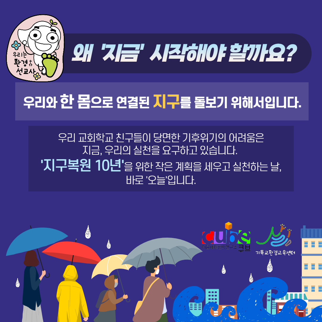 2030년의 지구를 위해 교육하고 실천하는 녹색교회학교가 되어주십시오.