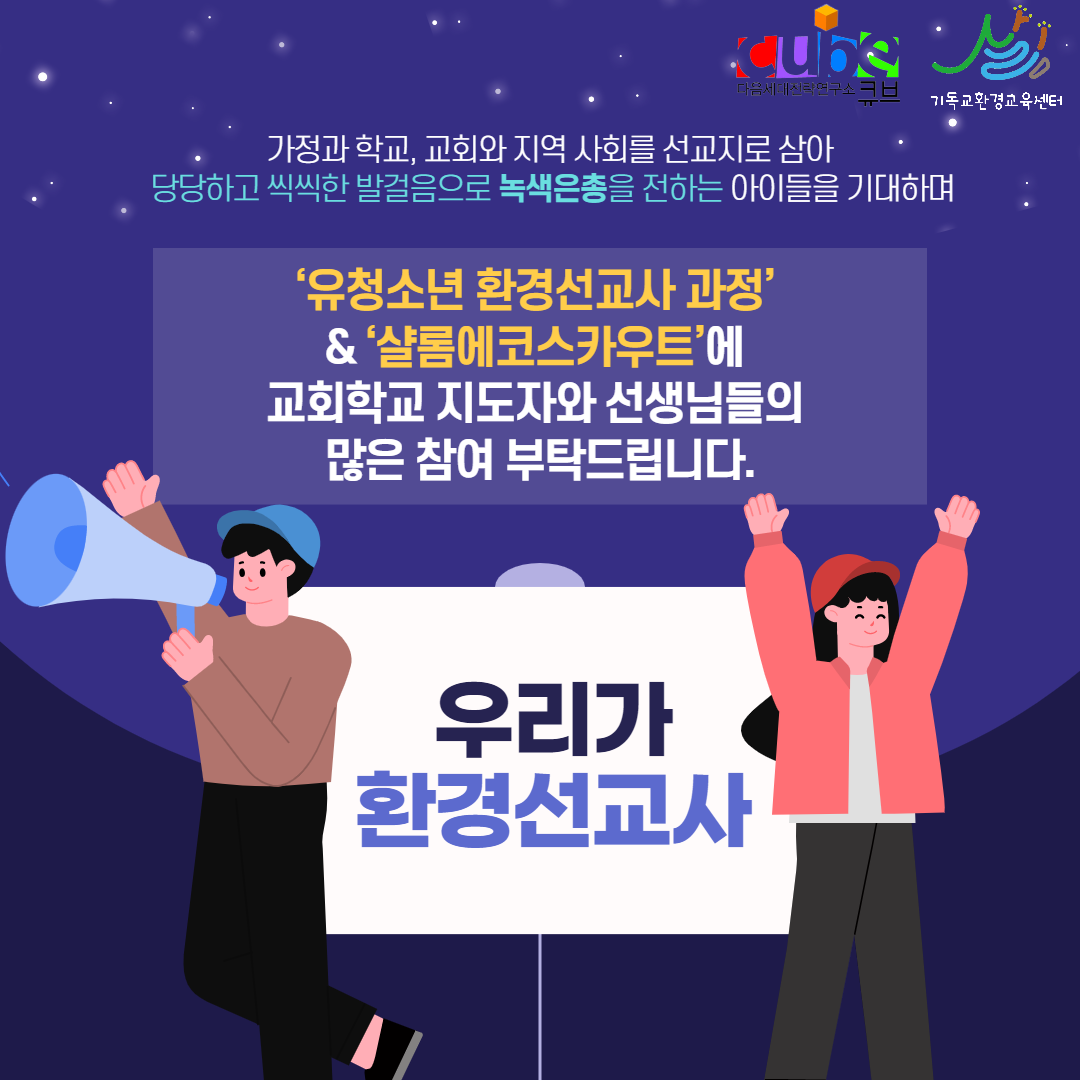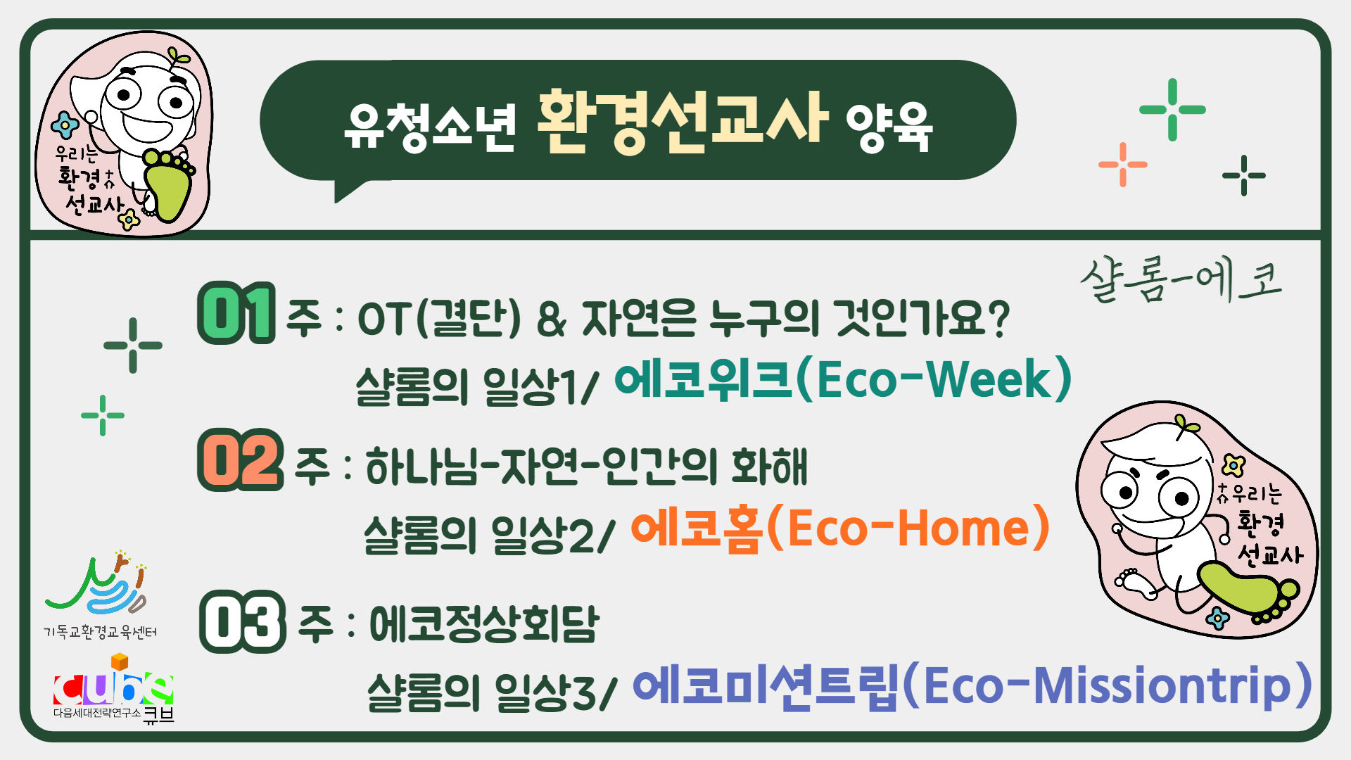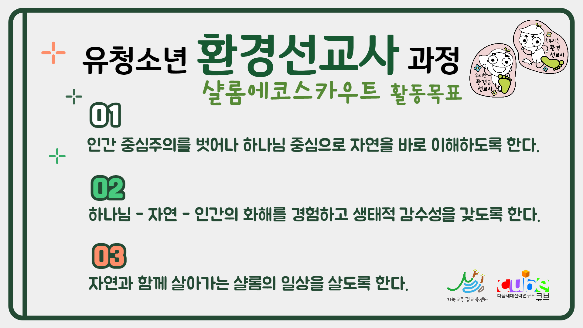2. 유청소년 환경선교사 과정 및 샬롬에코스카우트(공감-포용-참여 활동) 안내 (아래에서 우선 참조)