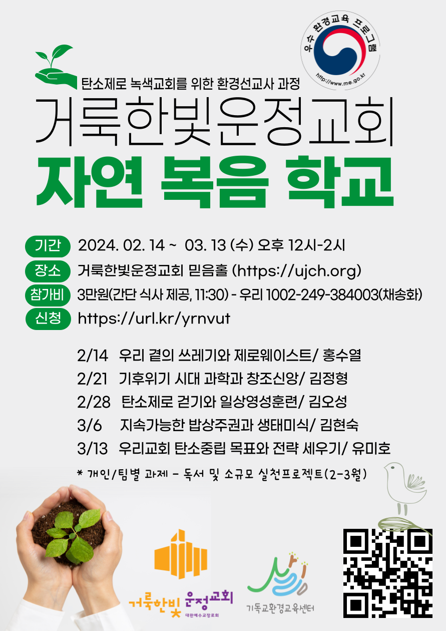 | 2024-2 탄소제로 녹색교회를 위한 환경선교사 과정 <전주제자교회> (0) | 2024.02.21 |