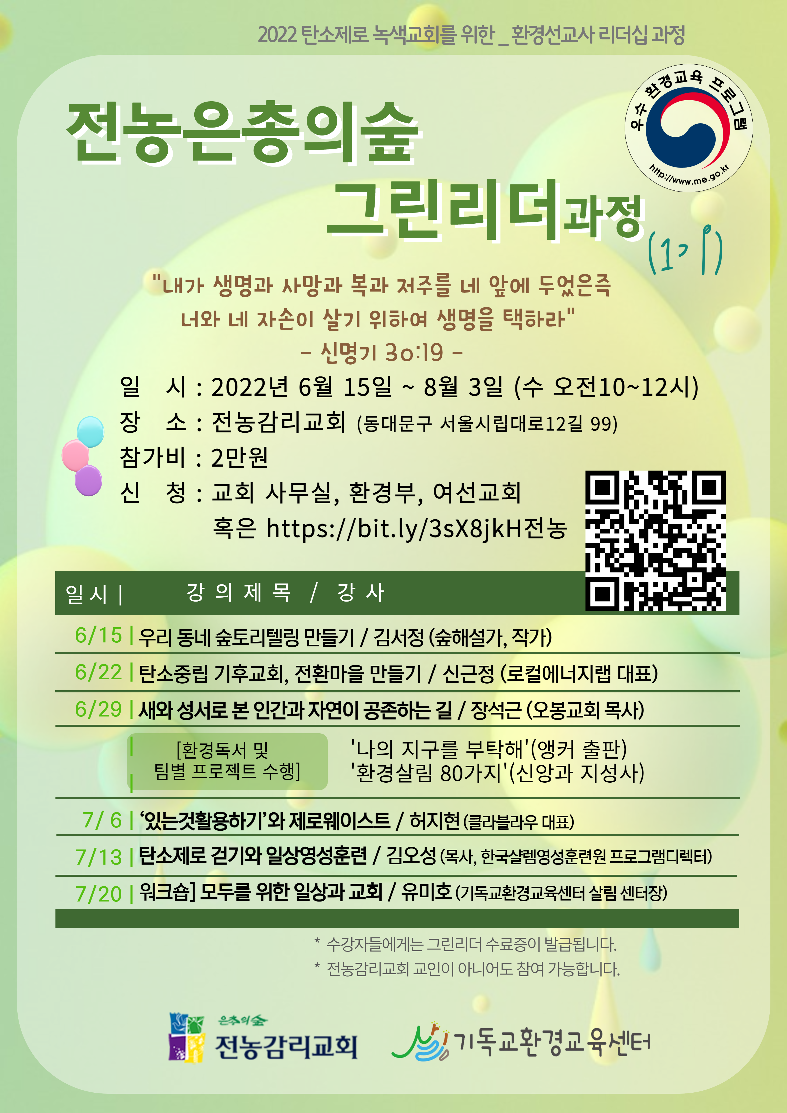 2022 탄소제로 녹색교회를 위한 _ 환경선교사 리더십 과정
