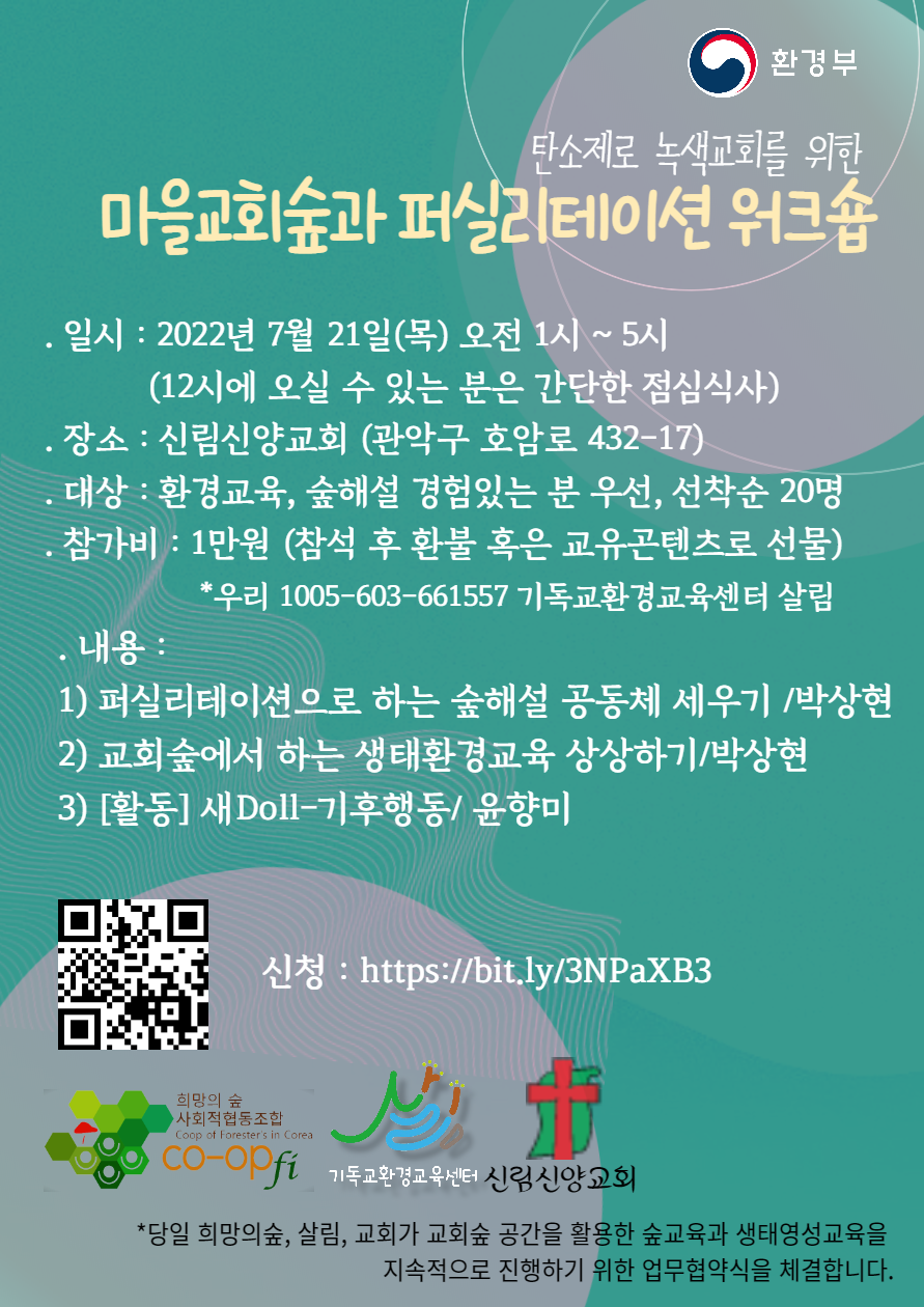 . 주최 : 신양교회, 기독교환경교육센터 살림, 희망의숲사회적협동조합