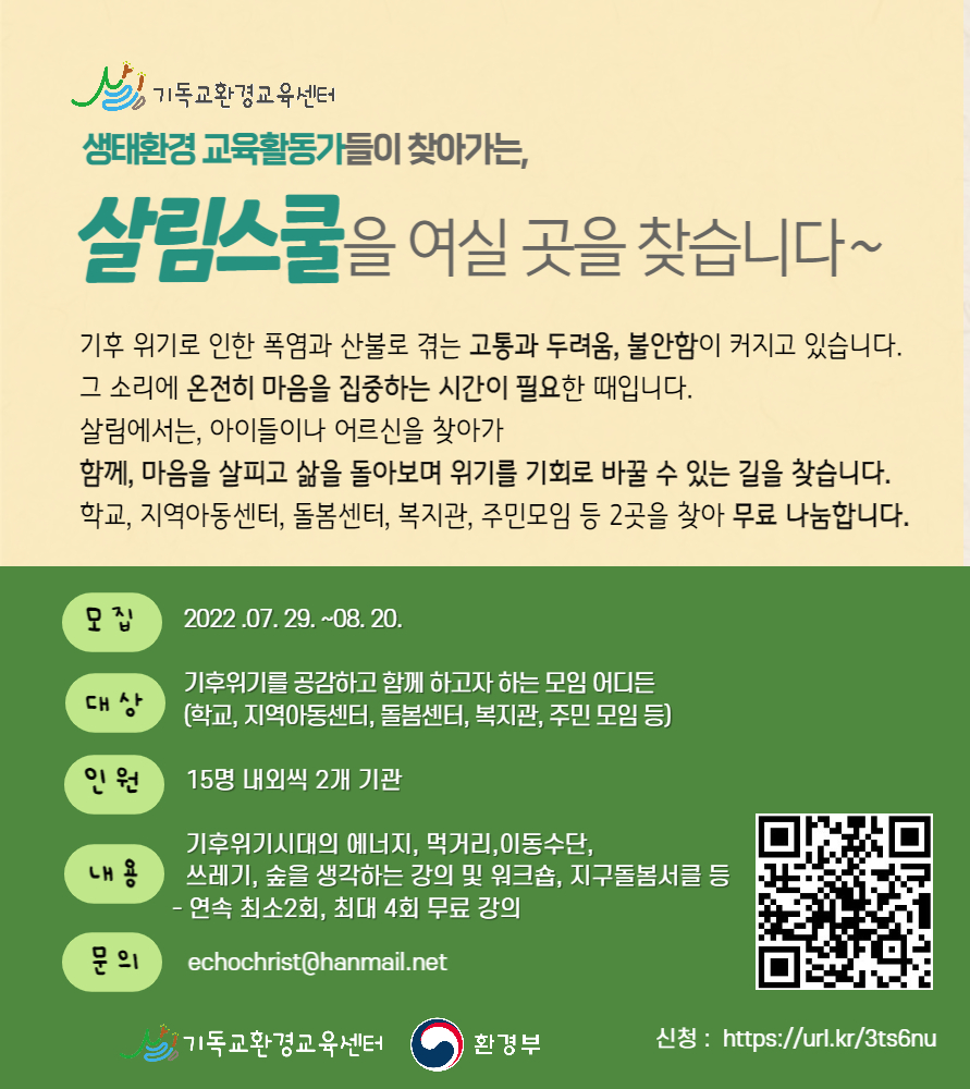 생태환경 교육을 받을 살림스쿨 신청합니다.