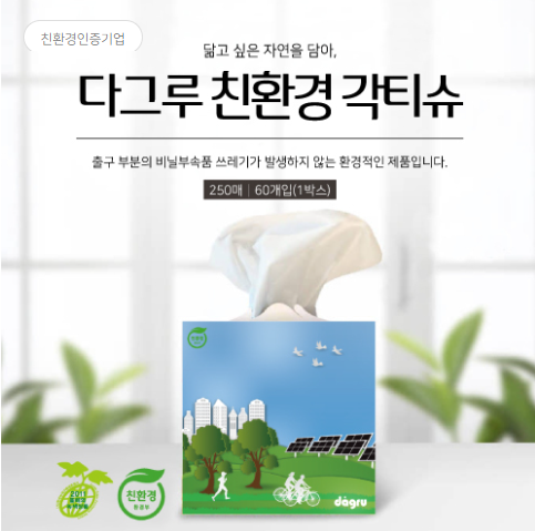환경표지 인증을 받은 '다그루 친환경 각티슈'