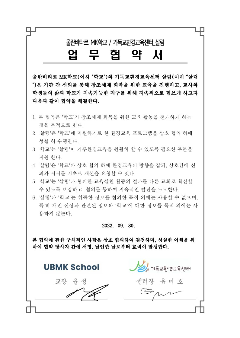 '기독교환경교육센터 살림 > 살림 업무 협약(MOU)' 카테고리의 다른 글