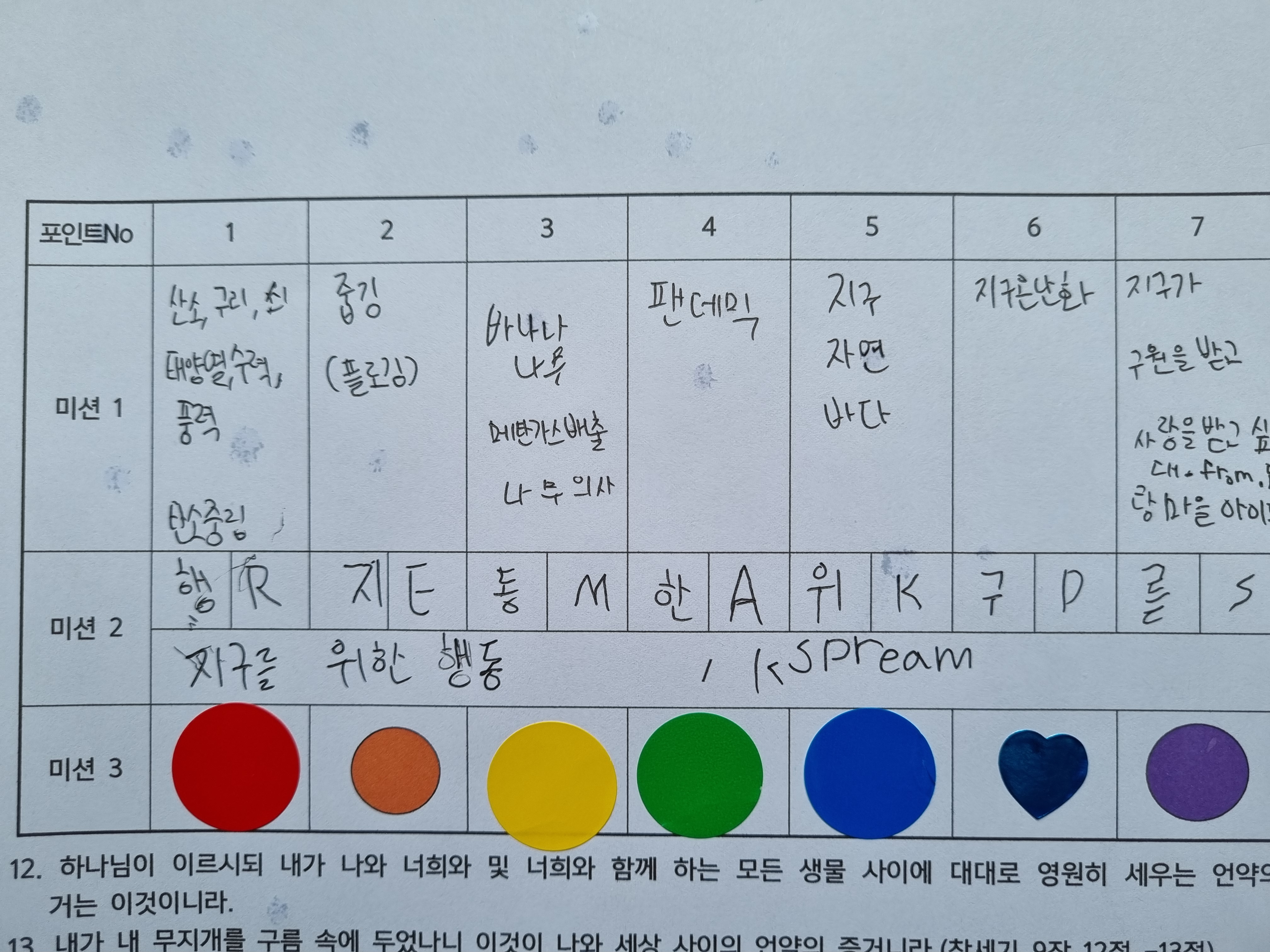 다양한 활동들을 통해 기후위기에 대한 생태감수성을 키우고, 더 나아가 교회 안에서의 생태영성을 확장하는 시간이 되었기를 소망합니다😀