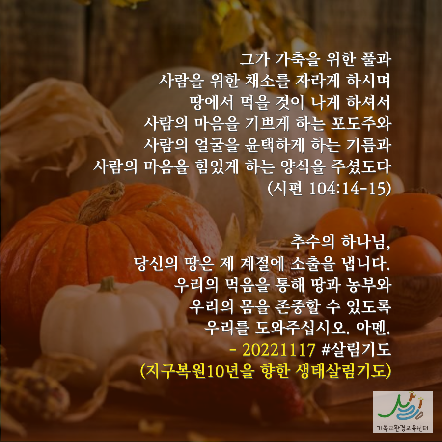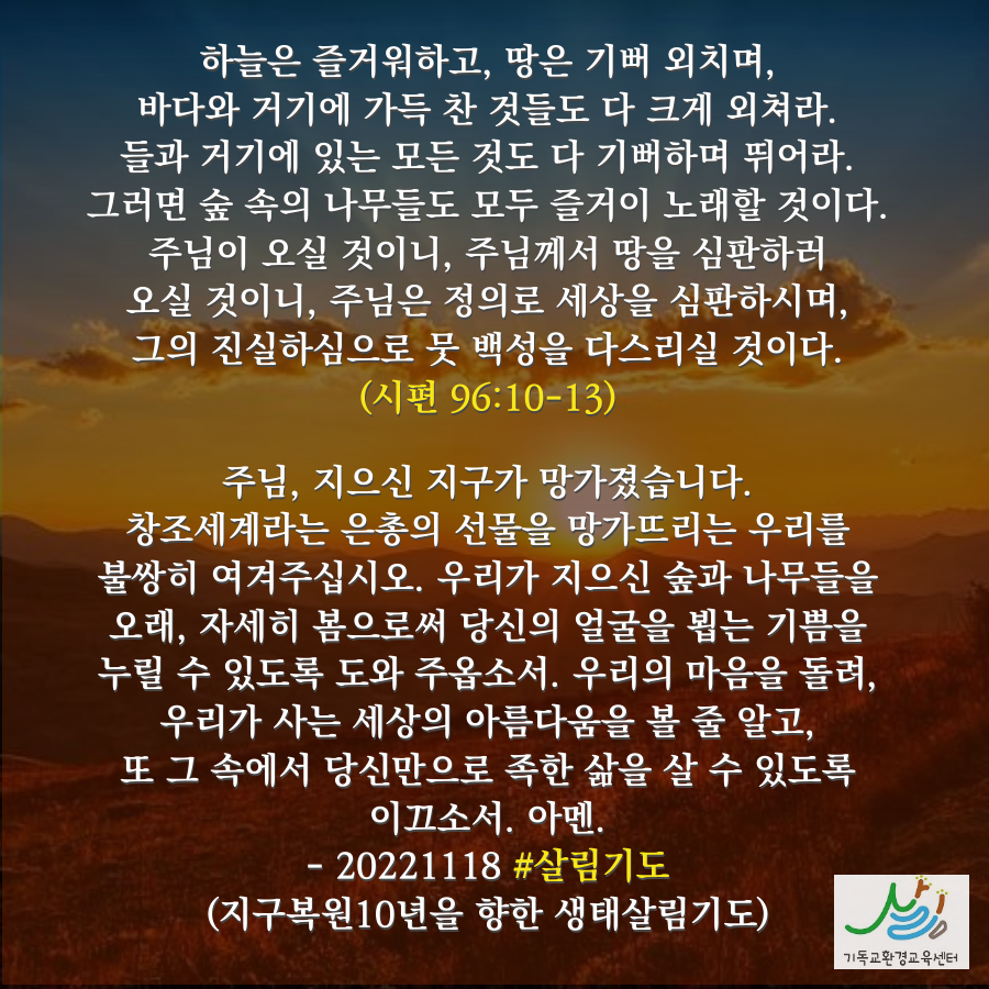 | 지구복원 10년을 향한 생태살림기도_202211(4주) (0) | 2022.11.21 |