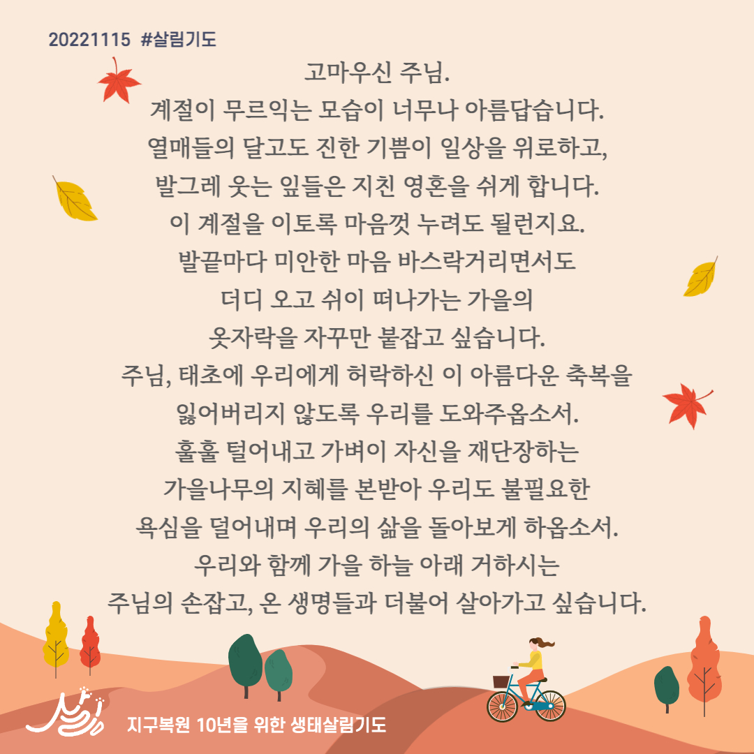| 지구복원 10년을 향한 생태살림기도_202211(2주) (0) | 2022.11.08 |