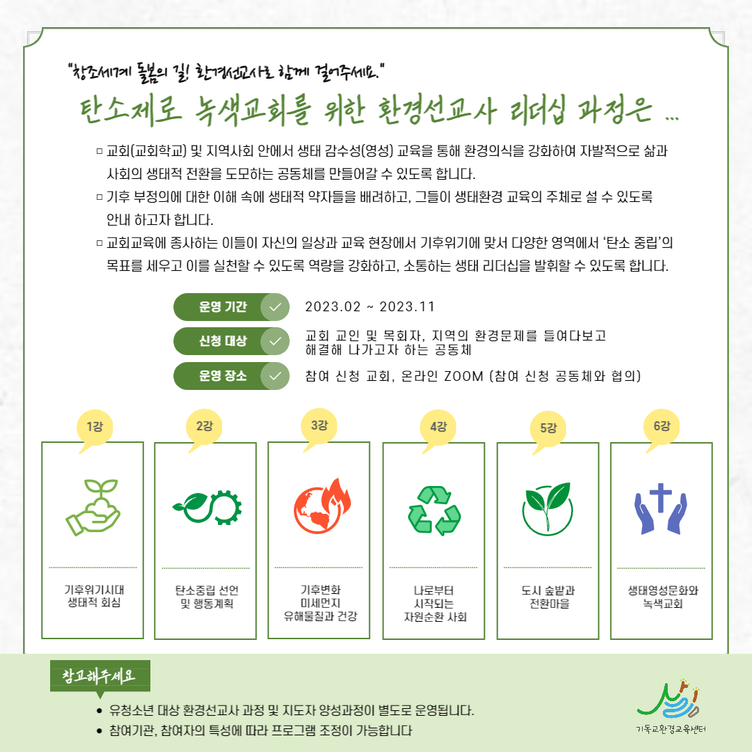 " 탄소제로 녹색교회를 위한 환경선교사 리더십 과정 "