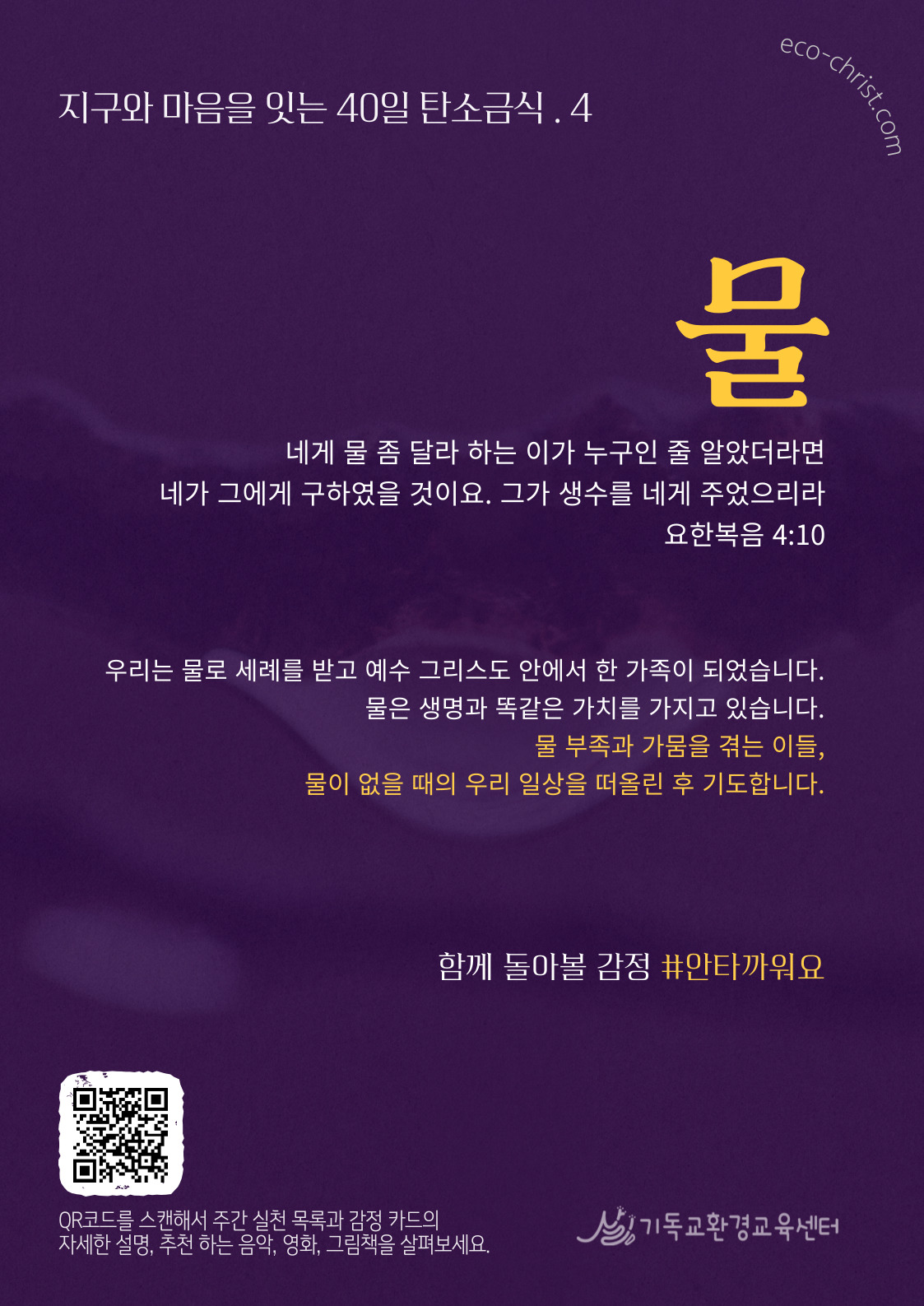 "물"을 주제로 성경말씀을 묵상하면서 지구와 마음을 연결합니다.