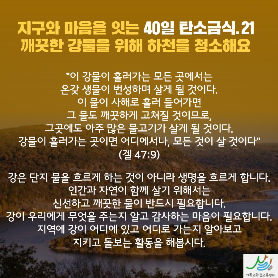 말씀과 함께 하는 탄소금식 40일 순례를 함께 떠나보셔도 좋습니다(개요 보기 : https://eco-christ.tistory.com/1534)
