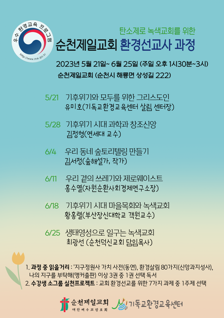탄소제로 녹색교회, 순천제일교회 환경선교사 과정이 열립니다!
