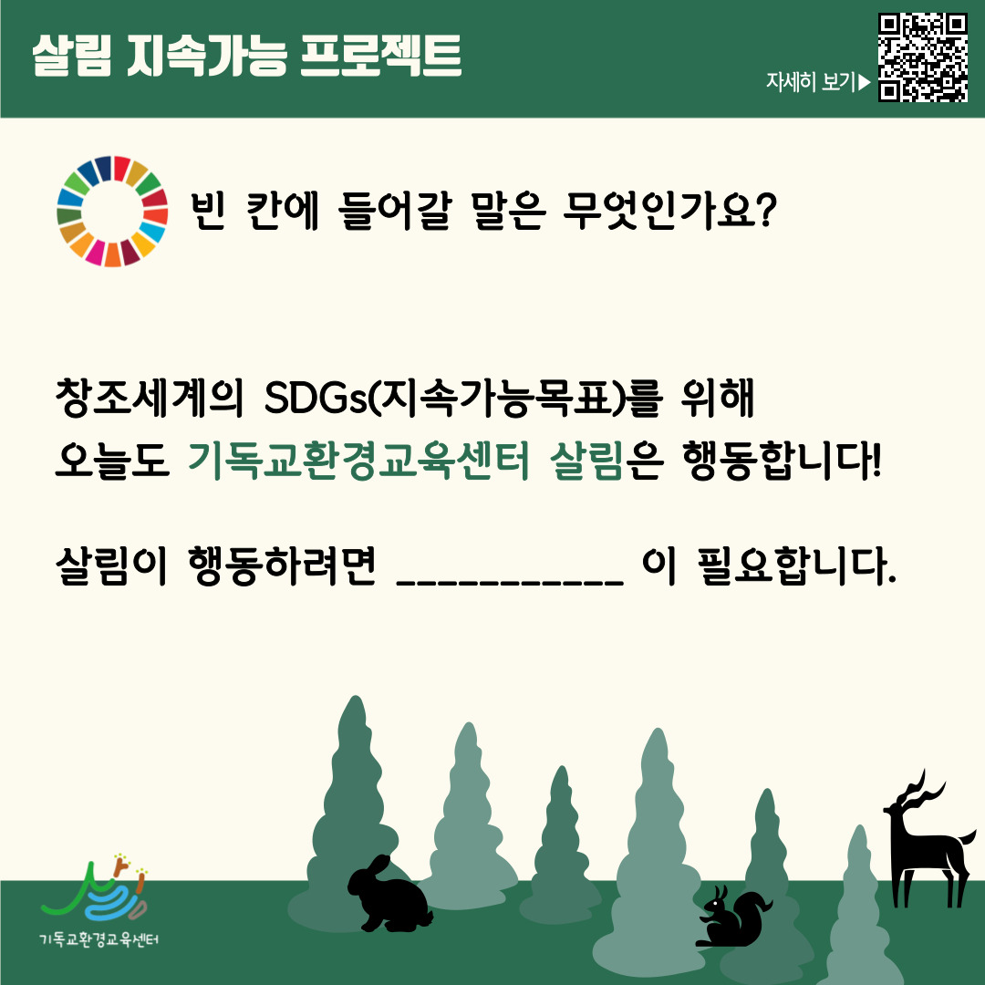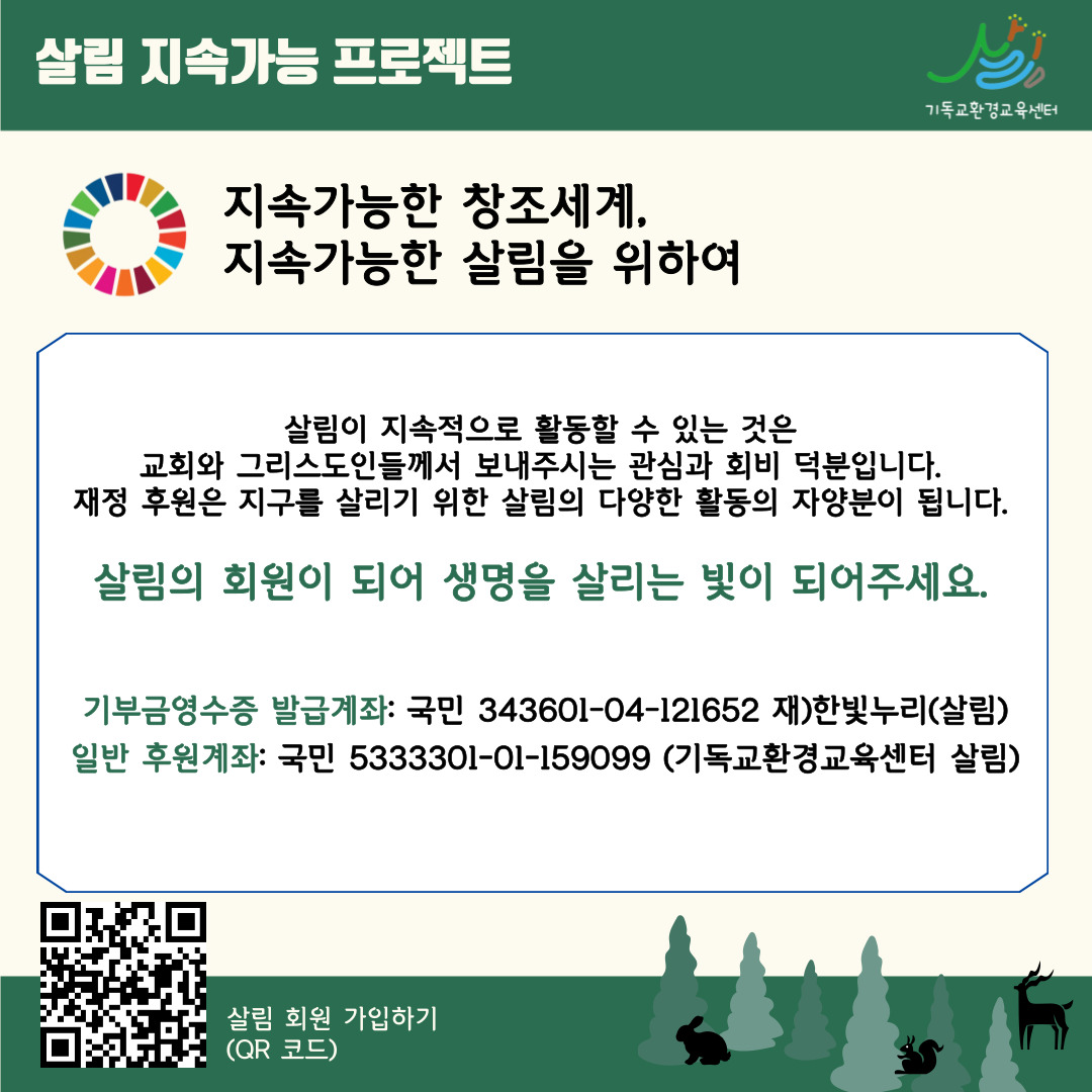 창조세계의 SDGs(지속가능목표)를 위해 오늘도 살림은 행동합니다.
