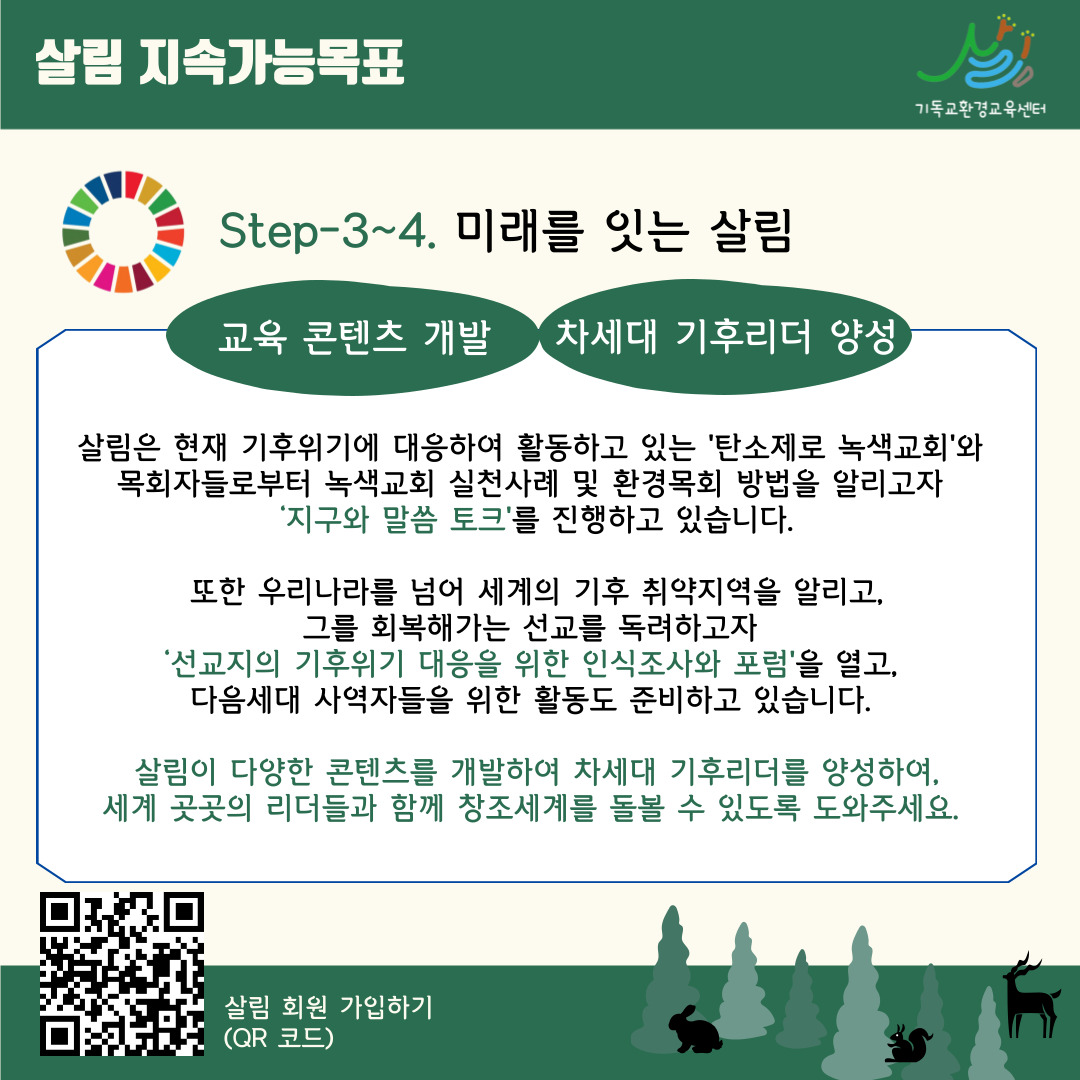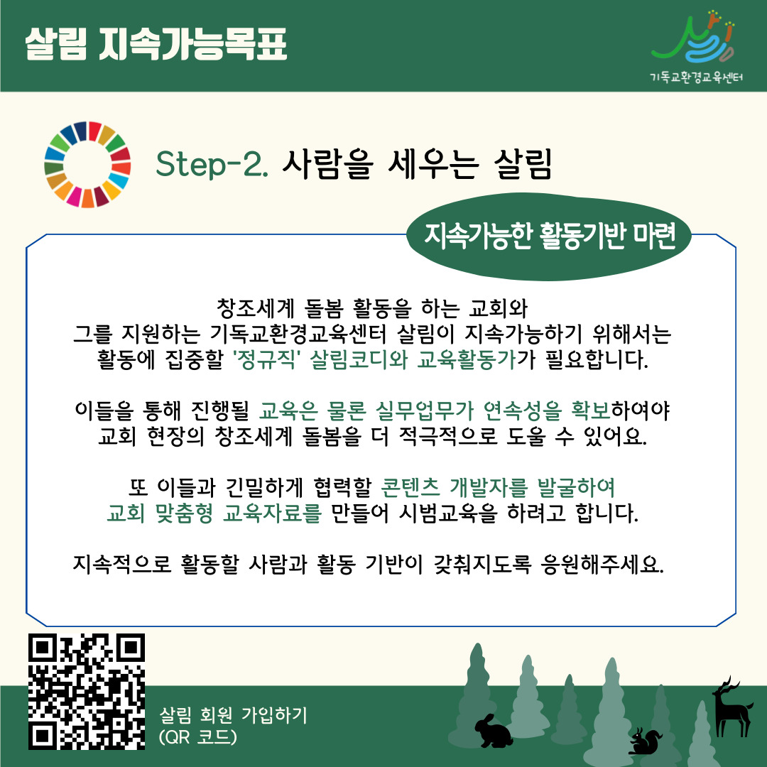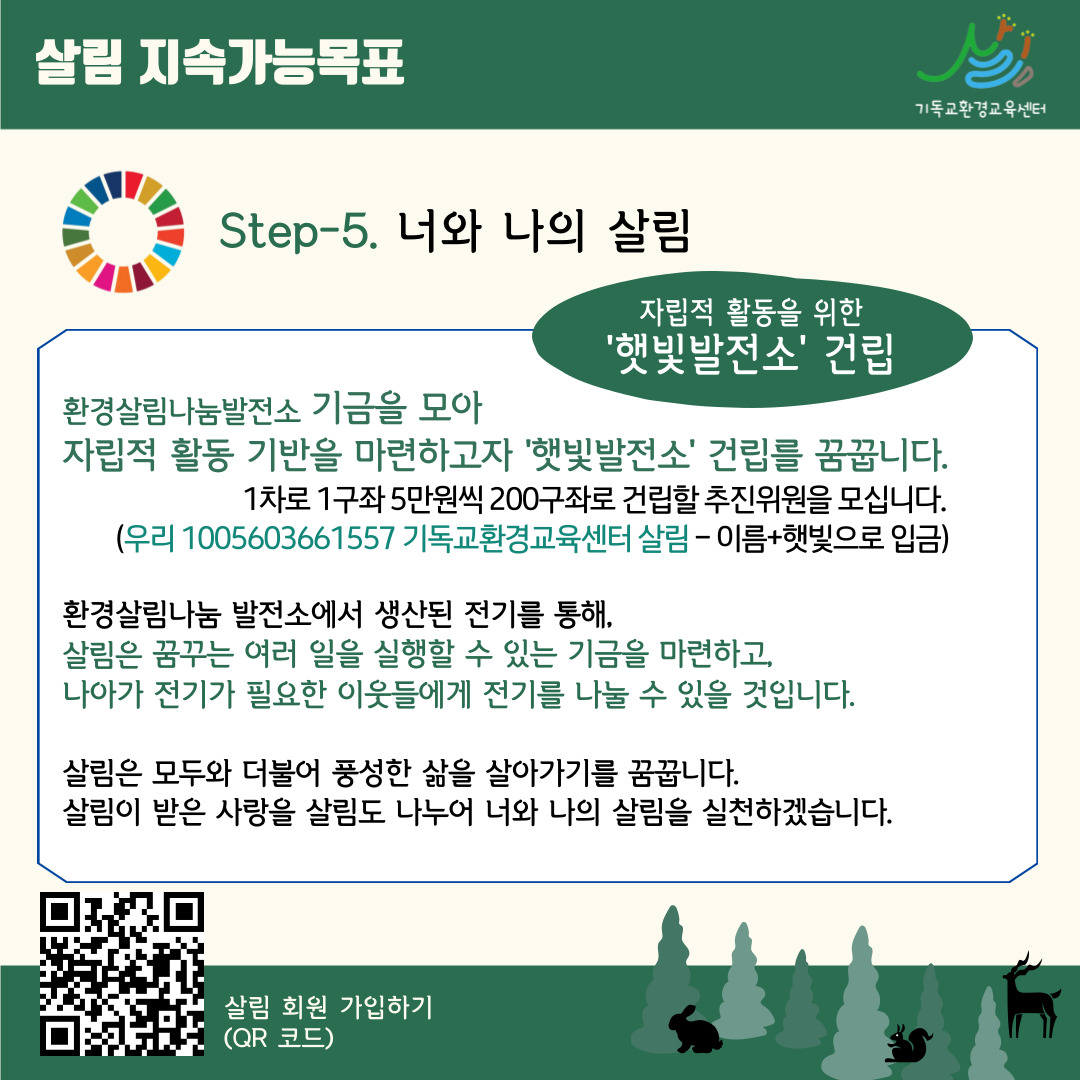 살림이 Step-2~5로 나아가 지속가능목표를 이루기 위해 살림 회원이 되어주세요.