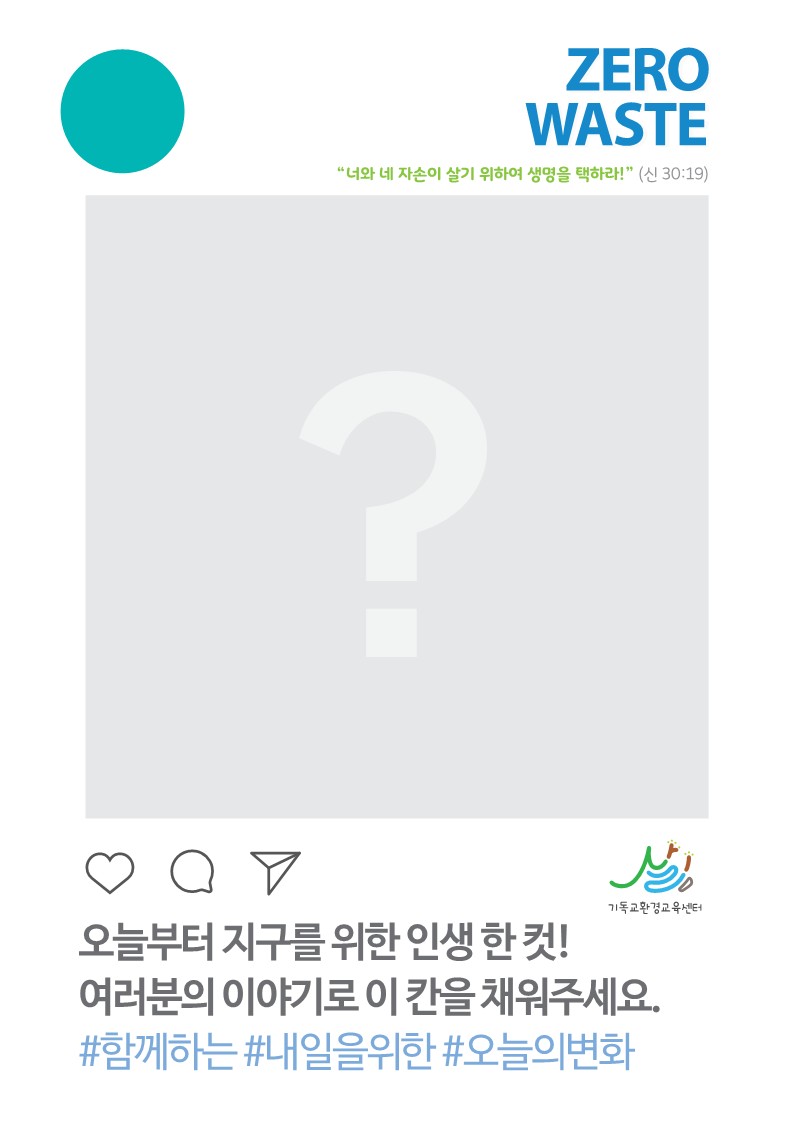 | 제로웨이스트 체험부스&공간 마련, 참여 교회/학교 모집 (0) | 2024.05.12 |
