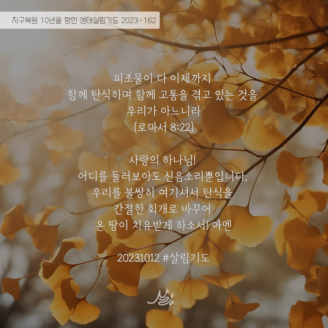 | 지구복원 10년을 향한 생태살림기도_2023년 10월 3주 (0) | 2023.10.16 |