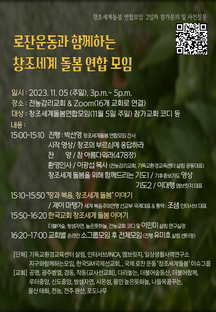 - 대상 : 창조세계돌봄연합모임(11월 5일 주일) 참가교회 코디 등