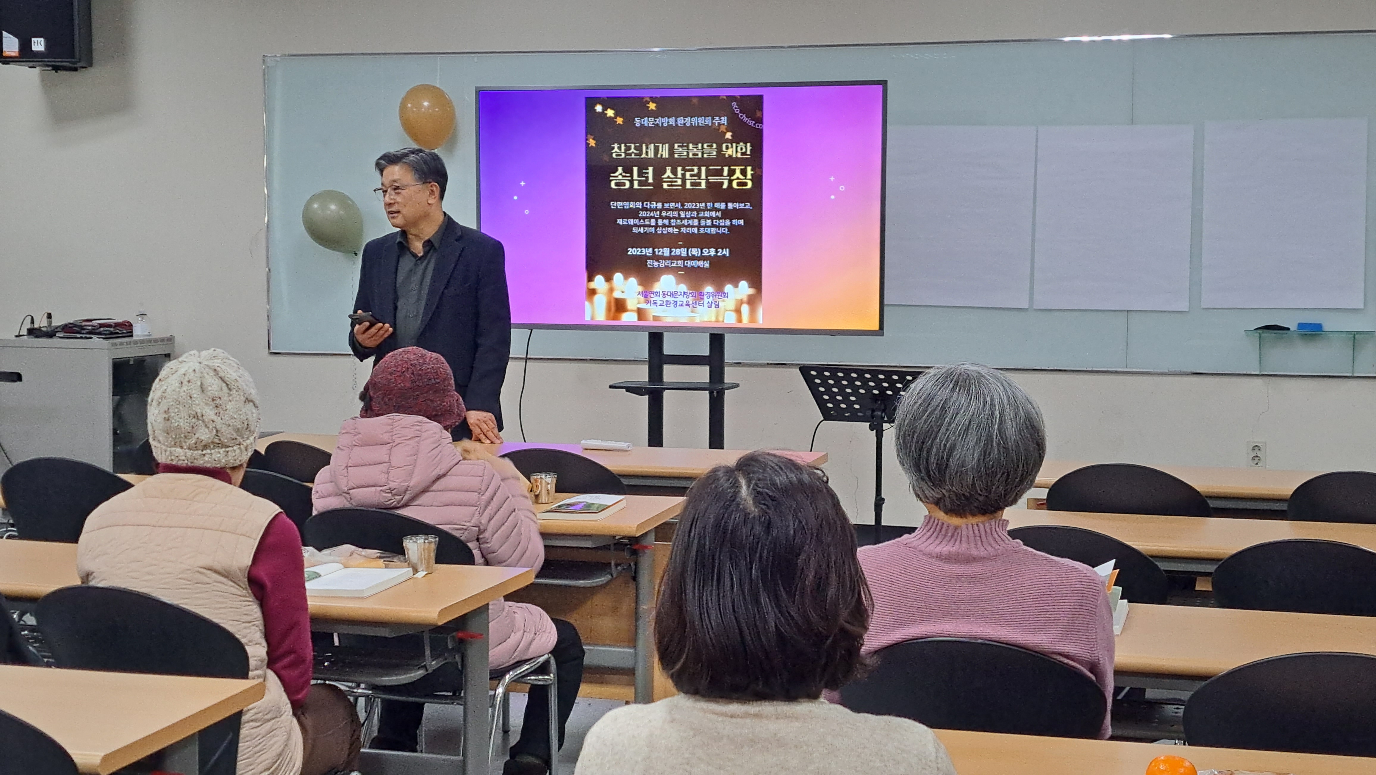 2023년 12월 28일, 오후 2시에 전농감리교회 2층 세미나실에서 "창조세계 돌봄을 위한 송년 살림극장"이 진행되었습니다.