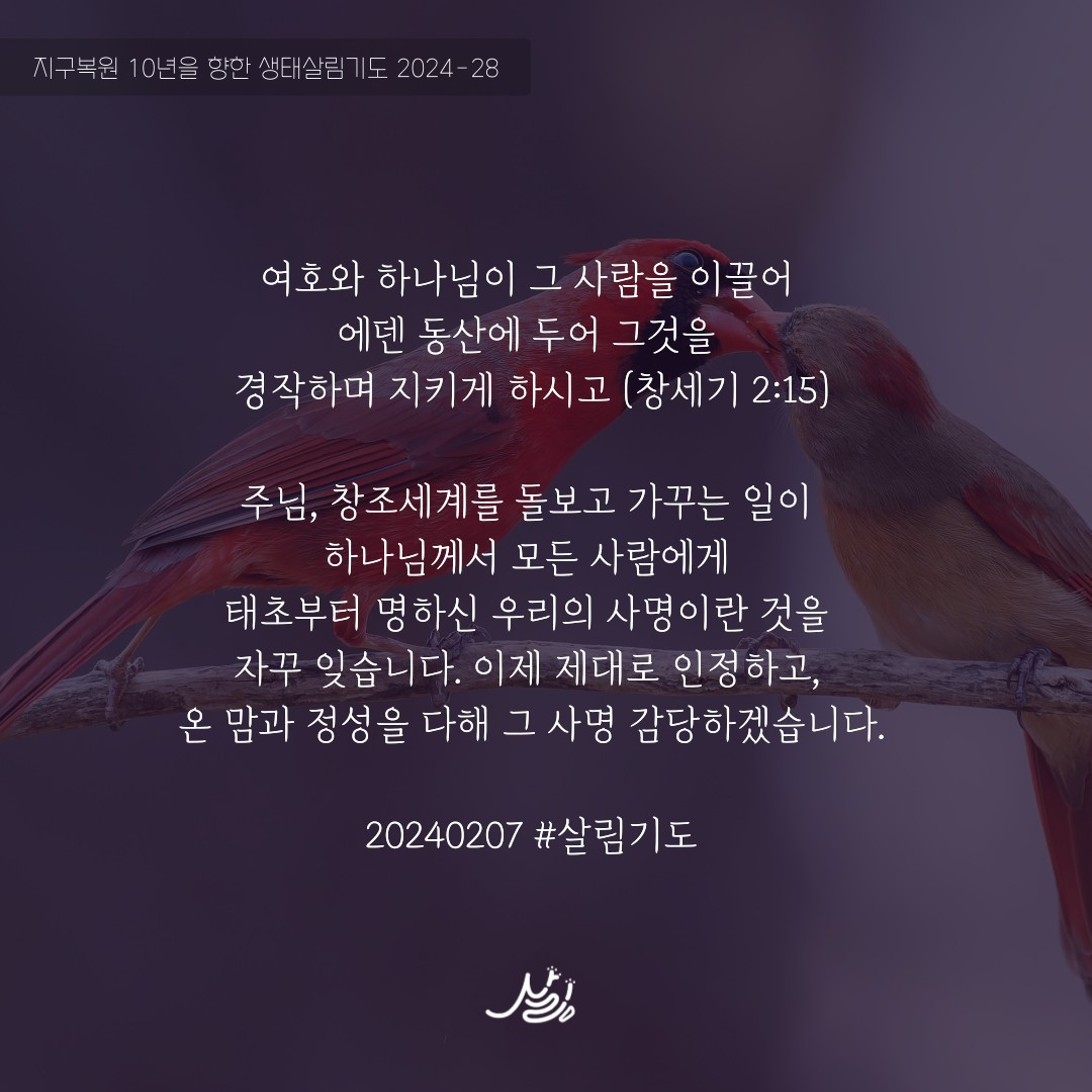 #지구 #복원 #기도 #환경 #묵상 #믿음 #신앙 #생태신앙 #말씀 #탄소중립 #환경선교 #환경교육 #탄소금식(6일) #창세기2장15절 #살림 #기독교환경교육센터_살림