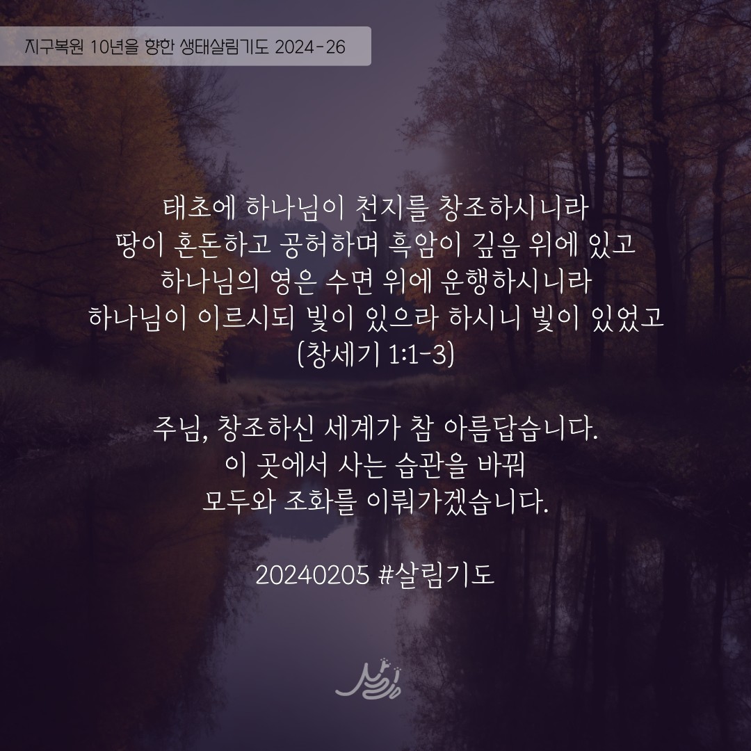 #지구 #복원 #기도 #환경 #묵상 #믿음 #신앙 #생태신앙 #말씀 #탄소중립 #환경선교 #환경교육 #탄소금식(첫번째주일) #창세기1장1-3절 #살림 #기독교환경교육센터_살림