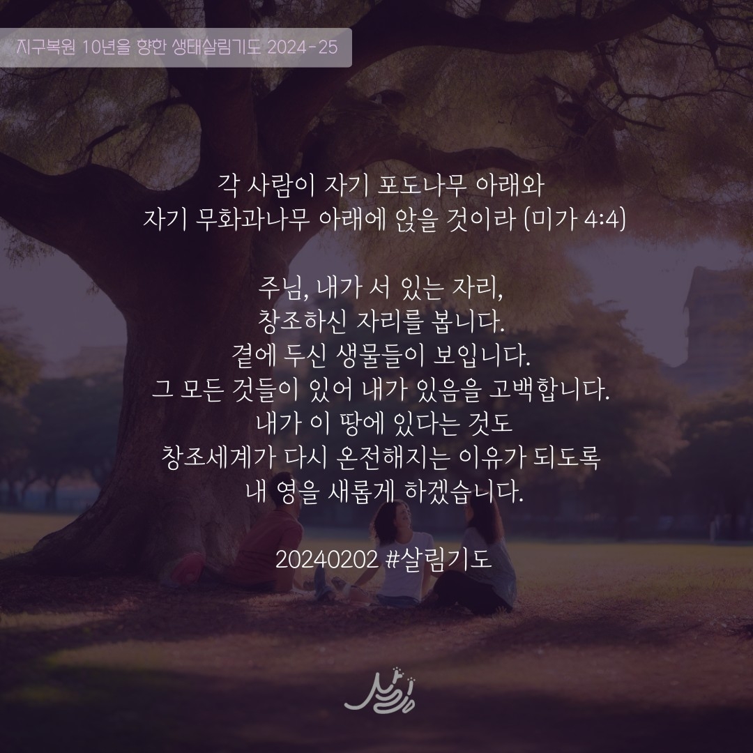 #지구 #복원 #기도 #환경 #묵상 #믿음 #신앙 #생태신앙 #말씀 #탄소중립 #환경선교 #환경교육 #탄소금식(4일) #미가4장4절 #살림 #기독교환경교육센터_살림 #살림신앙캠페인