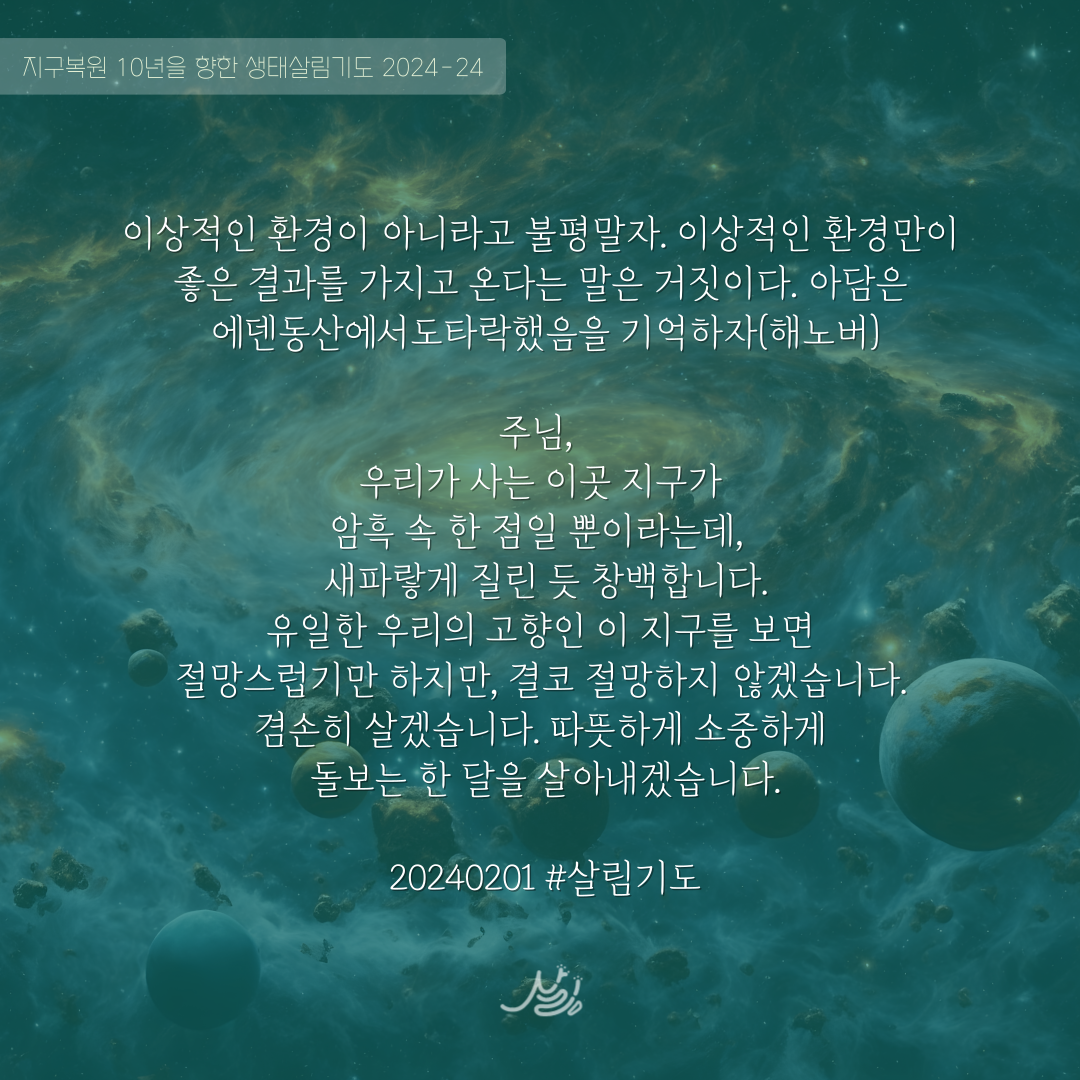 | 지구복원 10년을 향한 생태살림기도_2024년1월3주 (0) | 2024.01.14 |
