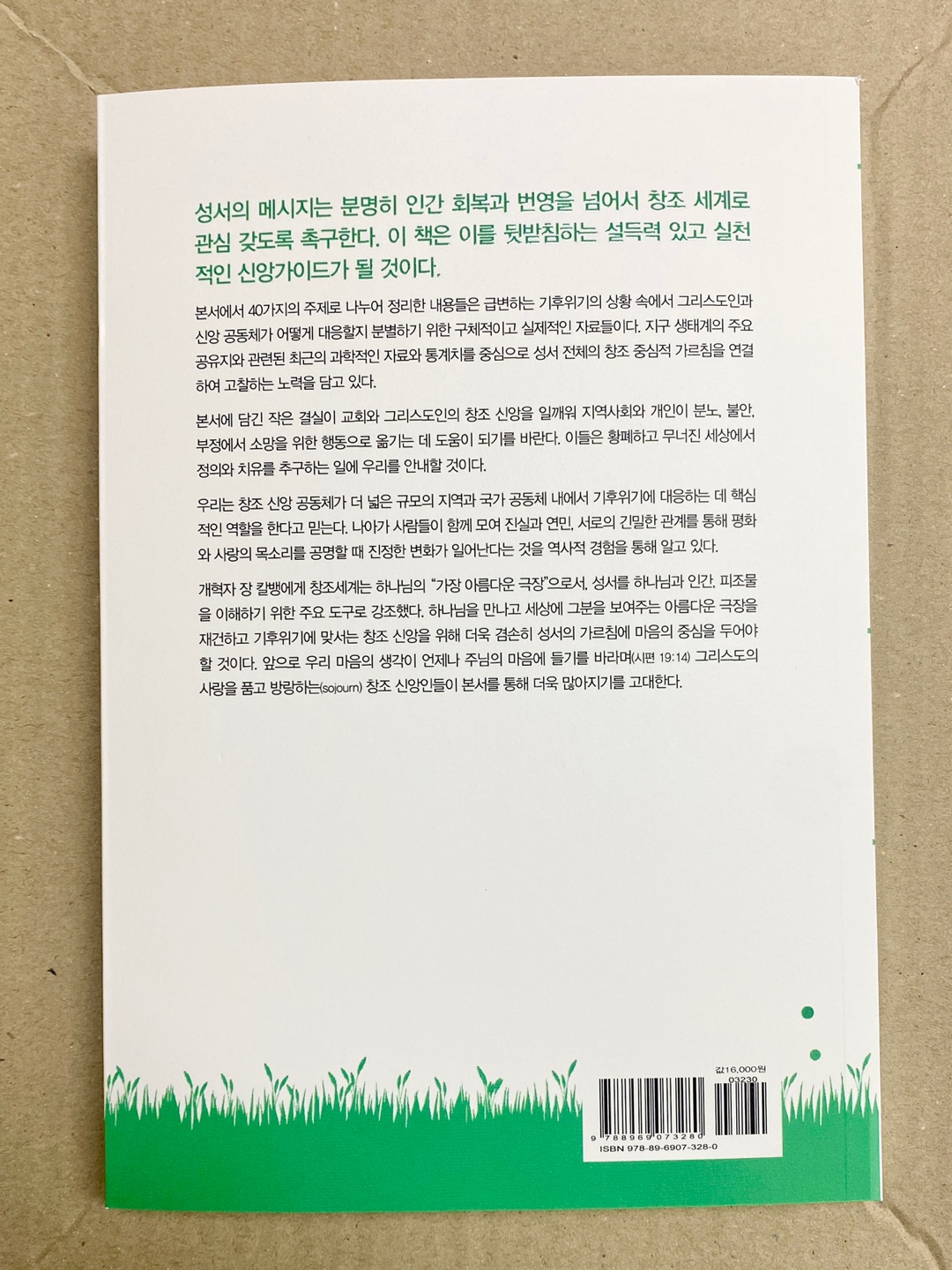 "성서의 메시지는 분명히 인간 회복과 번영을 넘어서 창조 세계로 관심 갖도록 촉구합니다. 이 책은 이를 뒷받침하는 설득력 있고 실천적인 신앙가이드가 될 겁입니다." 이 책을 모두에게 추천합니다!