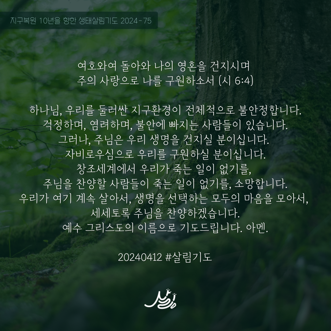 #지구 #복원 #기도 #환경 #묵상 #믿음 #신앙 #생태신앙 #말씀 #시편 #탄소중립 #환경선교 #환경교육 #살림 #기독교환경교육센터_살림