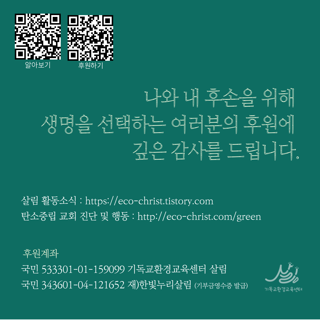 후원계좌 🌿국민 533301-01-159099 기독교환경교육센터 살림