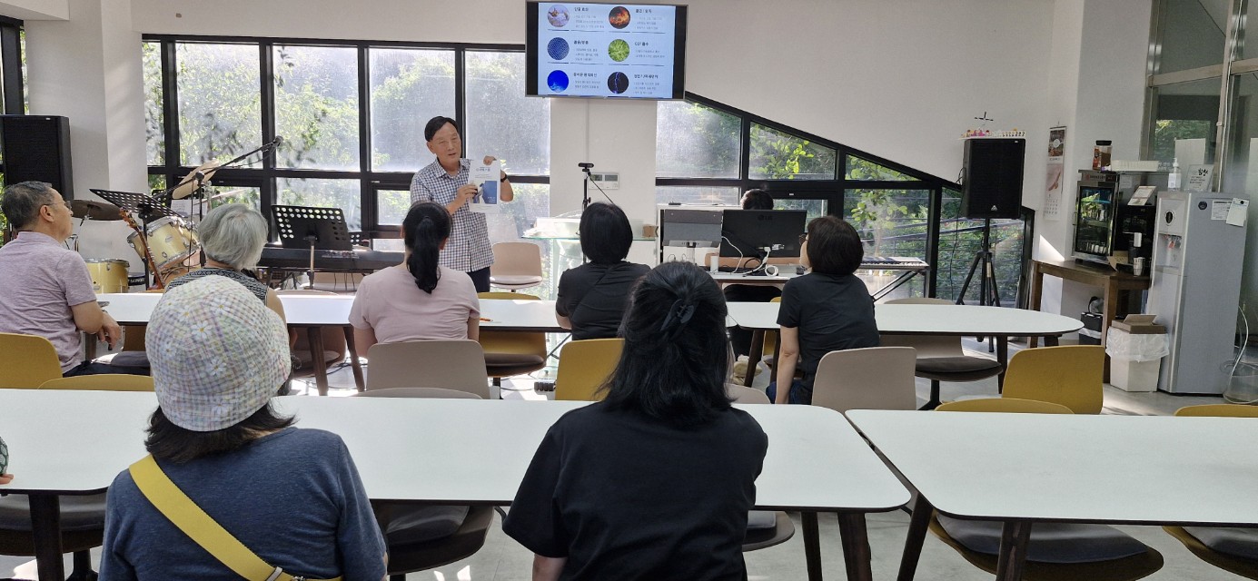 숯의 5천배나 되는 초다공체인 규조토와 건강하고 지속 가능한 공간에 대한 교육을 하고, 규조토 도포 활동을 진행하였습니다.