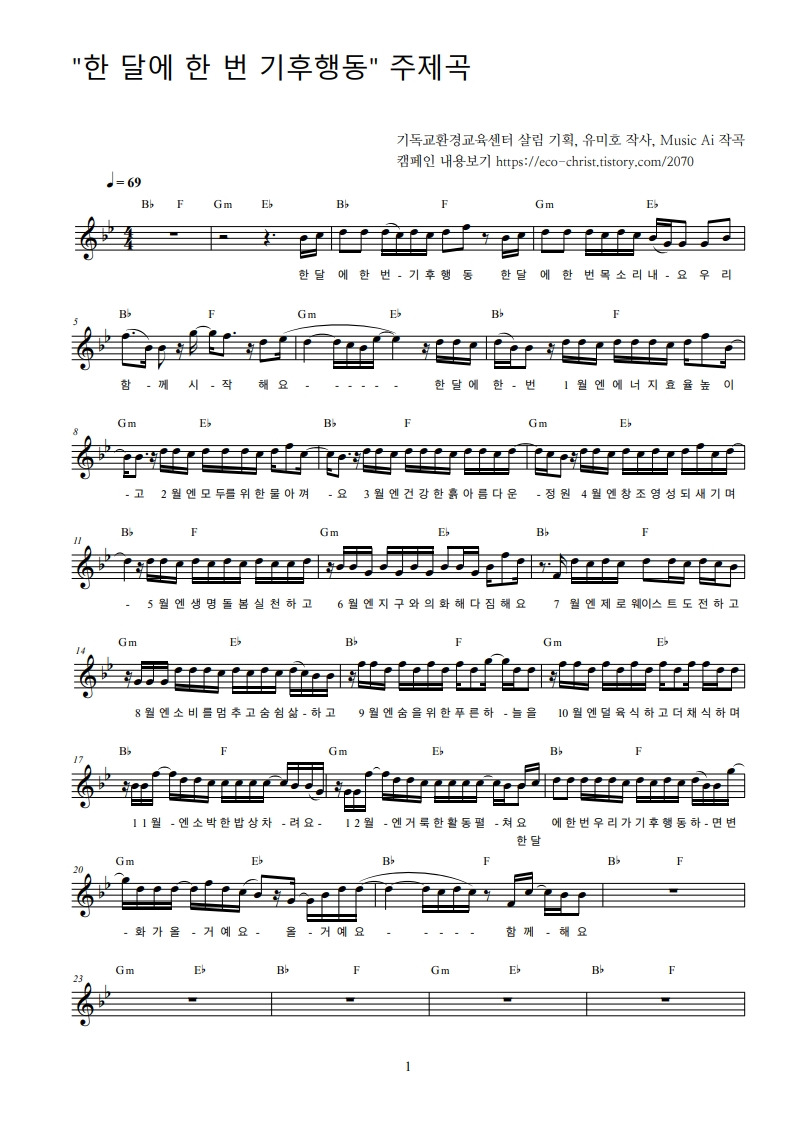 💚 12월 '한 달에 한 번, 기후 행동 - '생명을 기다리며' 주제곡 악보