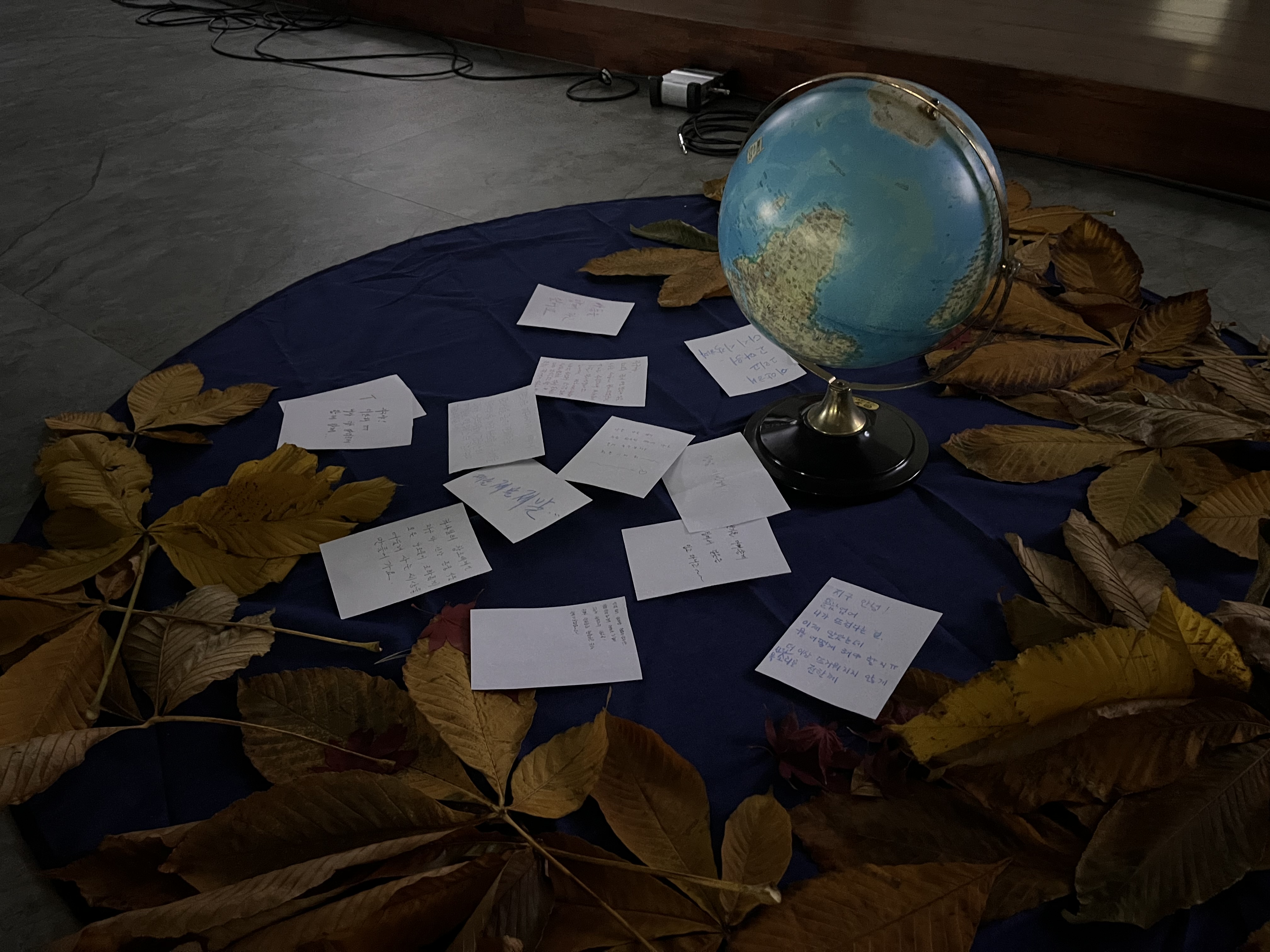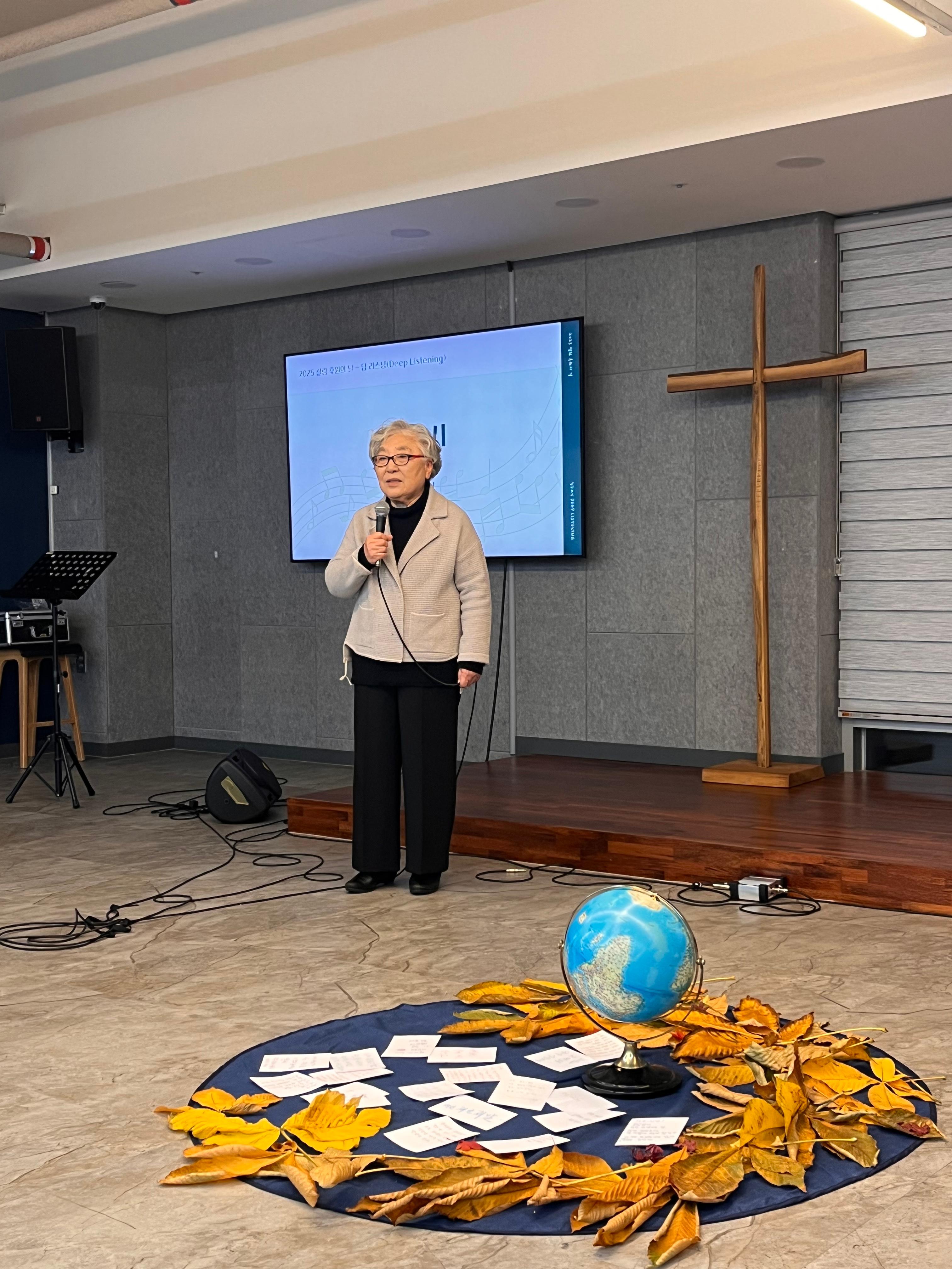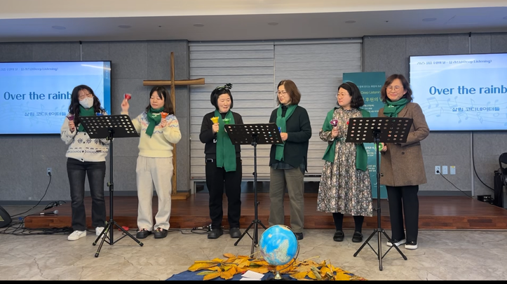 노래가 끝나고 김 살림코디는 물었다. "노래를 들으면서 무엇이 느껴지셨나요?" 각자 마음에 일어난 감정과 떠오른 이미지를 적는 시간이었다. 어떤 장면이 떠올랐는지, 어떤 색깔이 보였는지, 지구가 지금 나에게 어떤 이야기를 건네는지. 옆 사람과 짝을 지어 자신이 느낀 것을 나누기도 했다. 잠시였지만, 음악을 통해 그동안 지구에 무심했던 것이 미안했고, 눈에 보이지 않는 창조세계의 목소리와 다시 연결되는 듯했다. 이것이 딥 리스닝이었다.