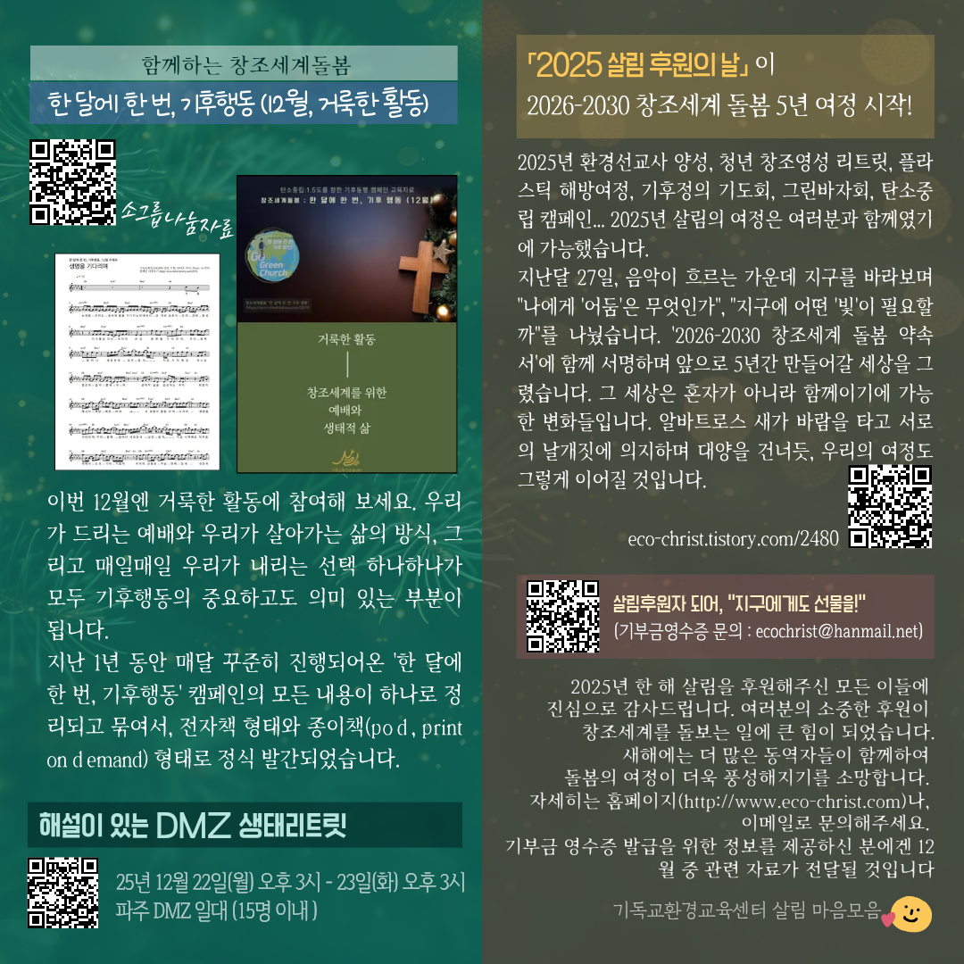 🌴 한 달에 한 번, 기후행동 (12월, 거룩한 활동: 창조세계를 위한 예배와 생태적 삶)