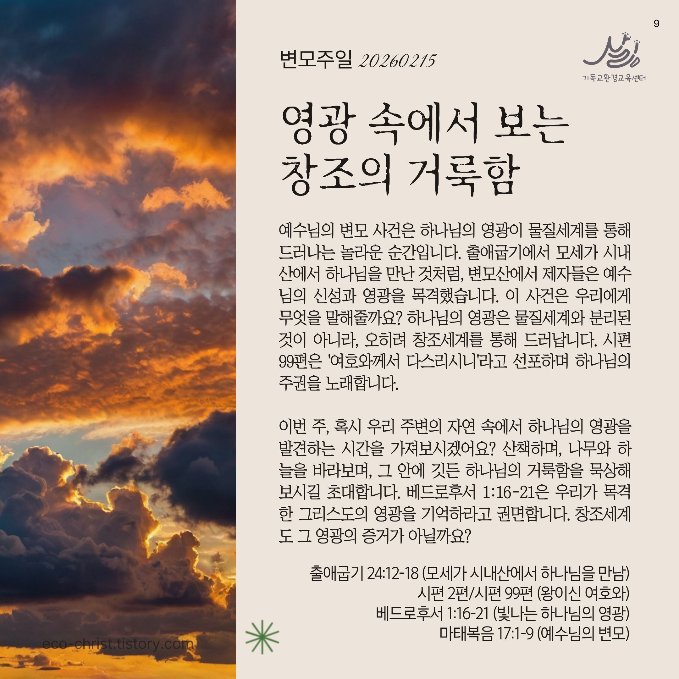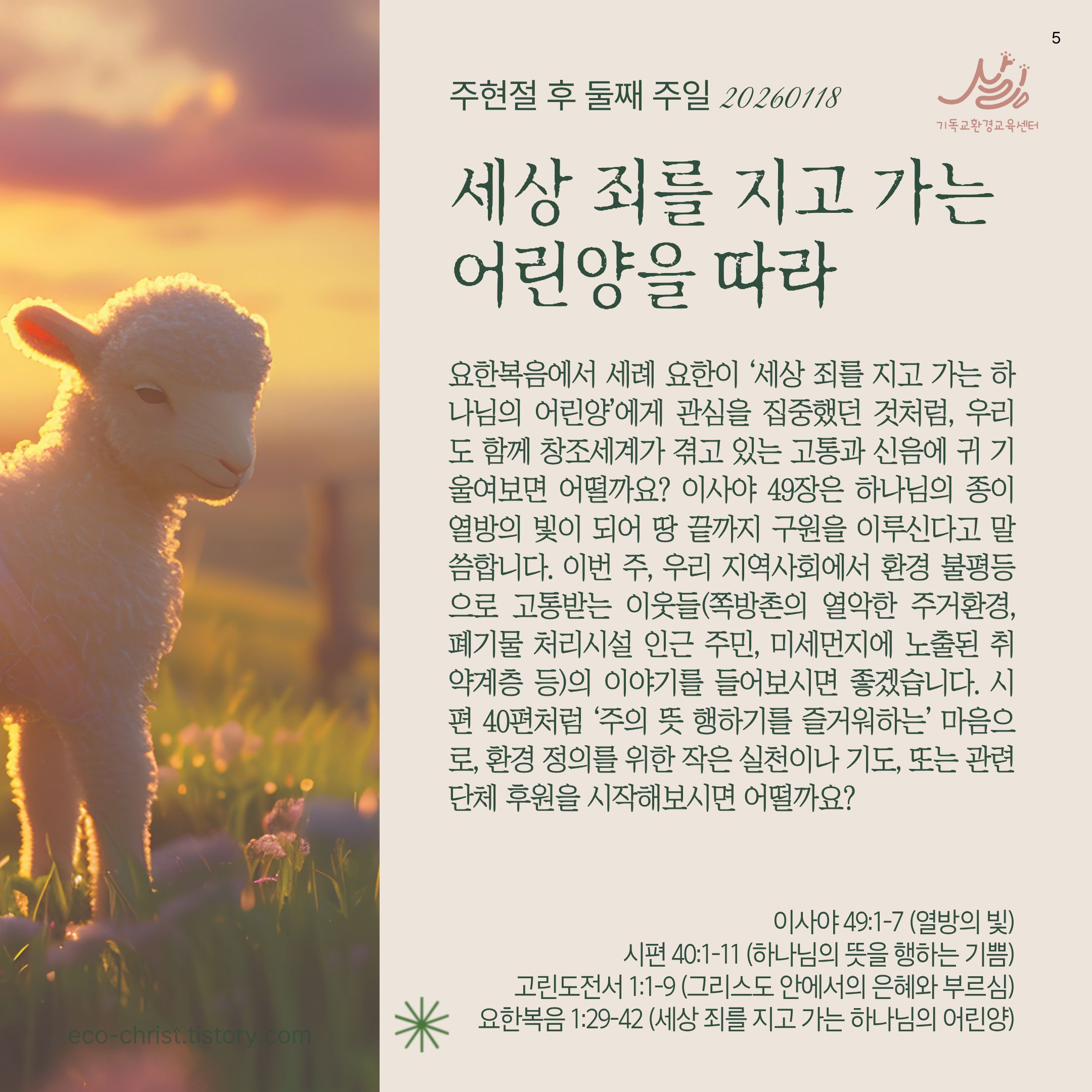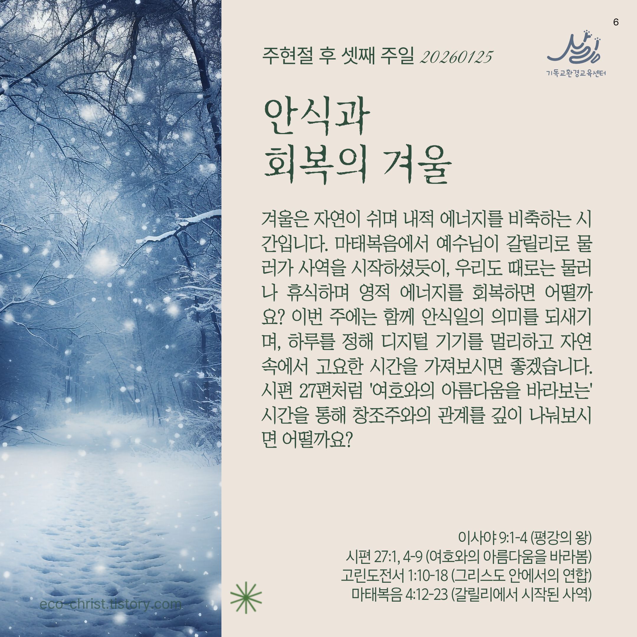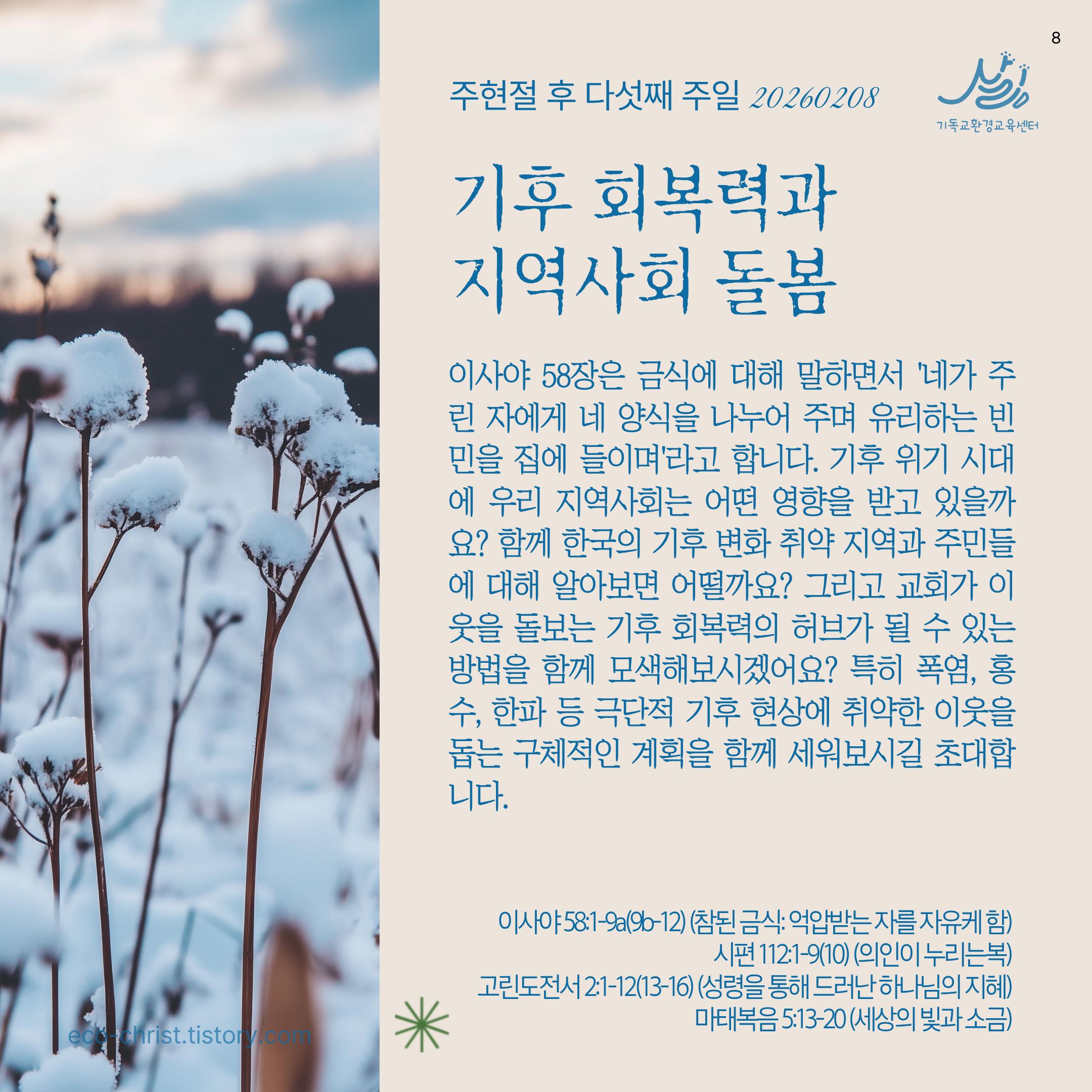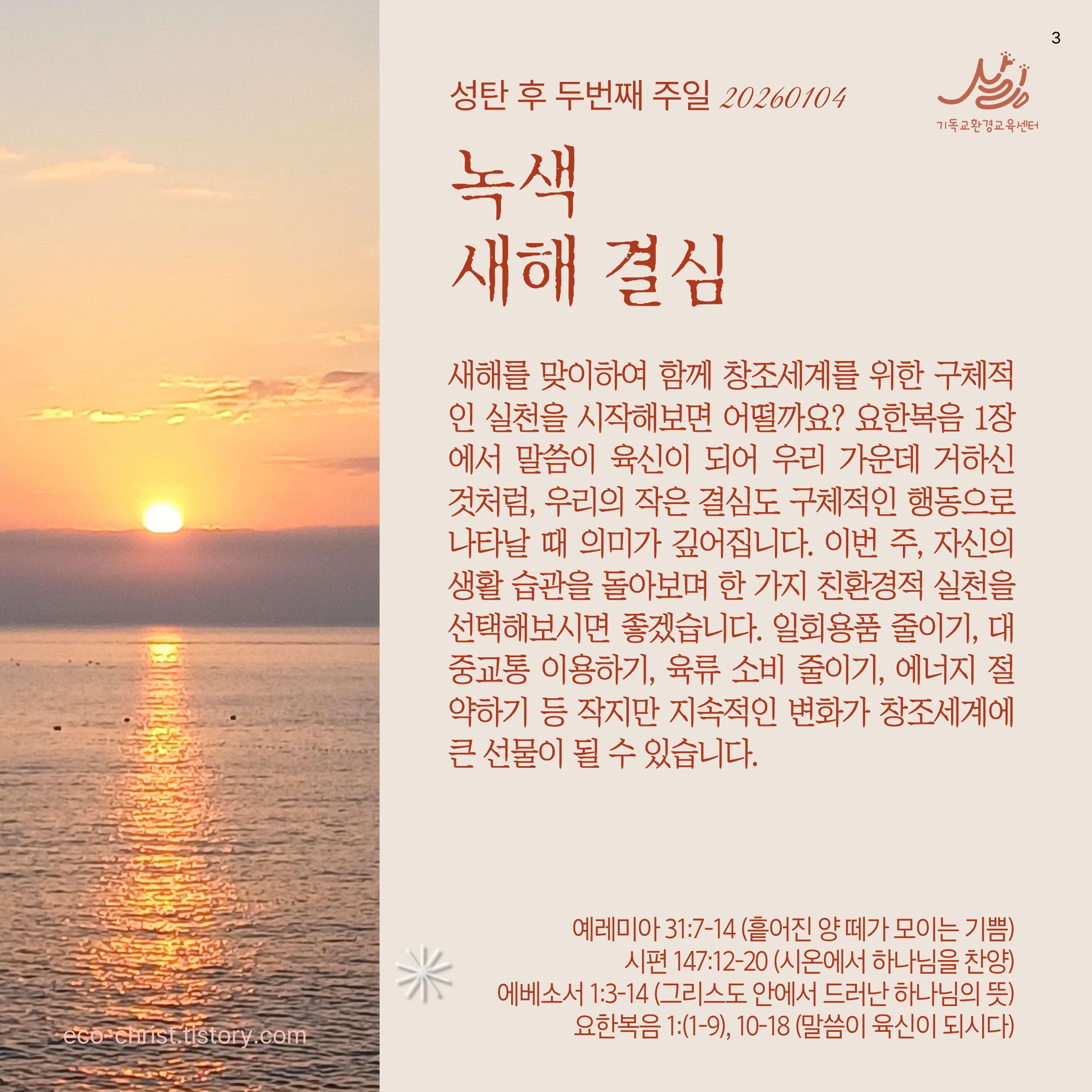 🌿2025-2026 창조세계 돌봄 52주 캠페인 안내: https://eco-christ.tistory.com/2487