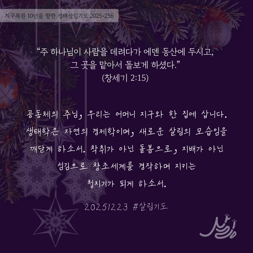 | 지구복원 10년을 향한 생태살림기도_2025년12월3주 (0) | 2025.12.13 |