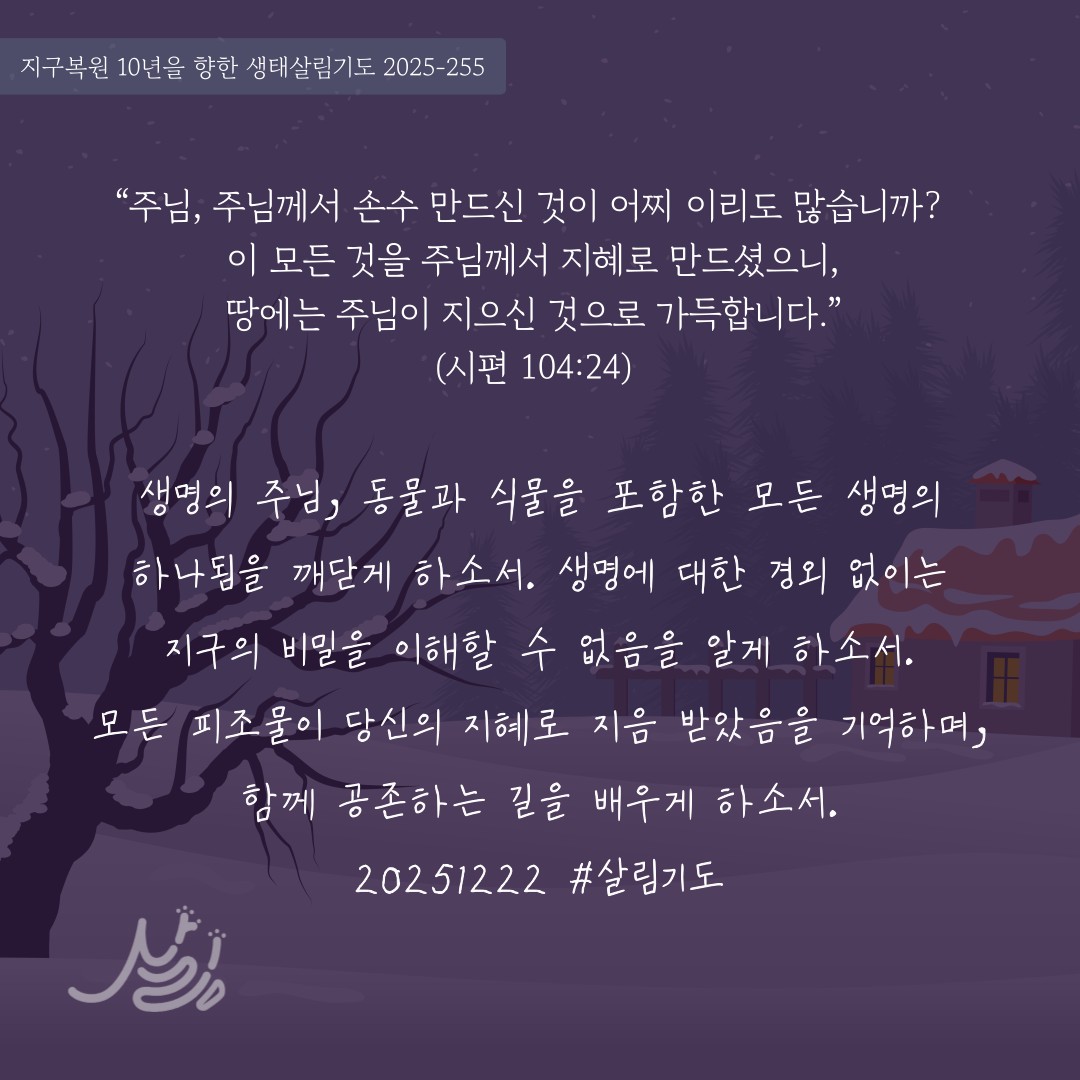 | 지구복원 10년을 향한 생태살림기도_2025년12월2주 (0) | 2025.12.07 |