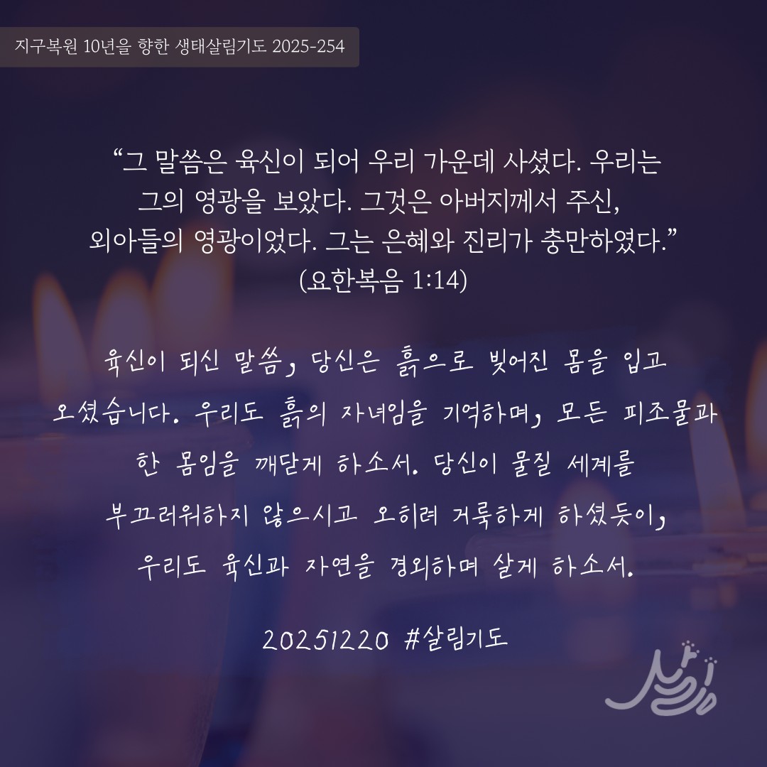 | 지구복원 10년을 향한 생태살림기도_2025년12월 1주 (0) | 2025.11.30 |