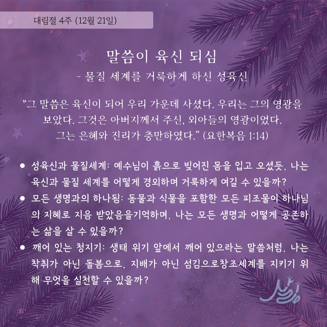 #대림절 #생태주의자_예수 #예수 #성탄 #살림 #함께살림 #말씀 #기도 #기후위기 #플라스틱 #기후돌봄 #제로웨이스트 #종다양성 #탄소중립 #지구 #환경 #묵상 #믿음 #기독교 #기독교환경교육센터_살림