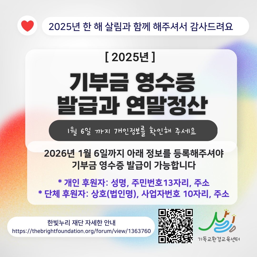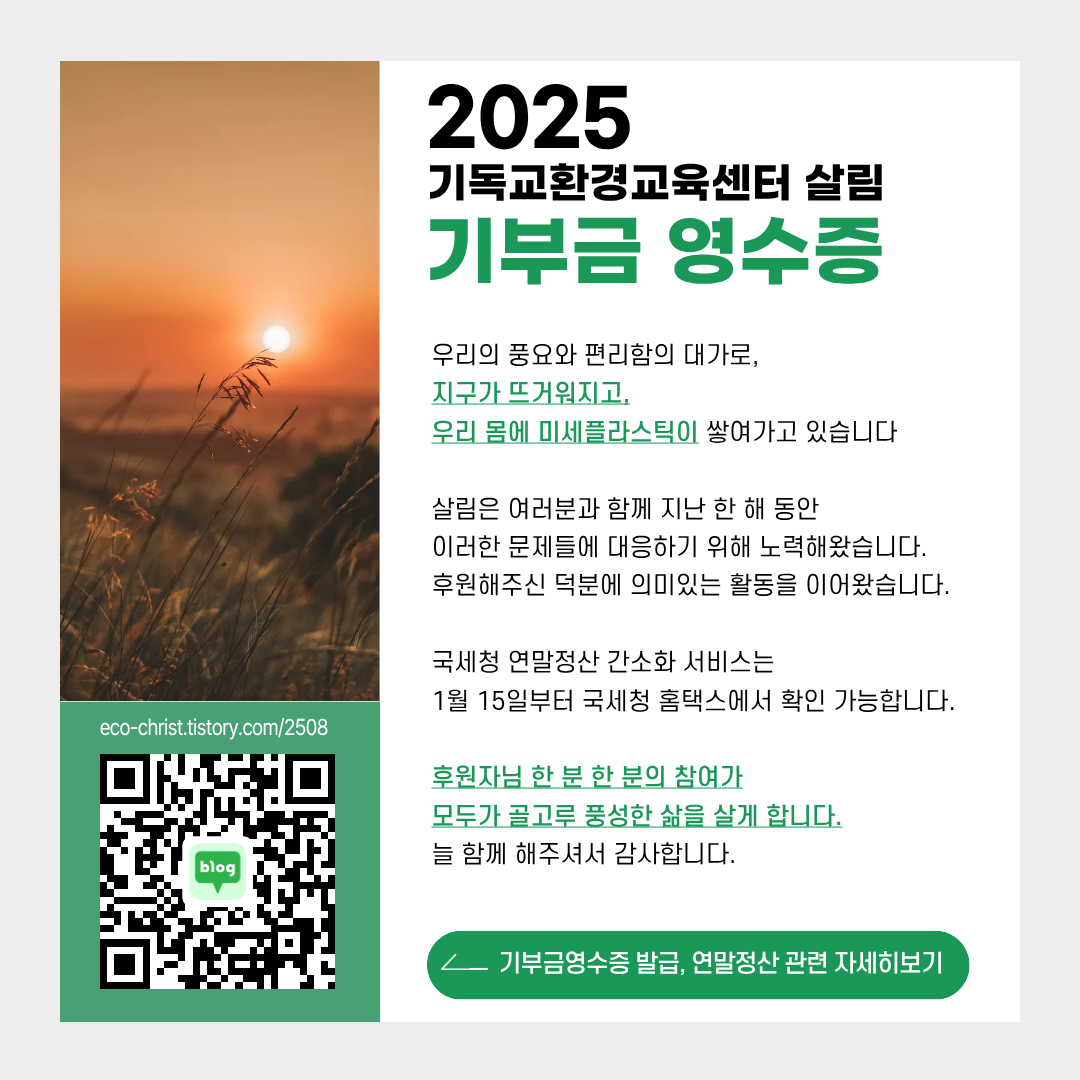 기독교환경교육센터 살림 후원하기 : https://online.mrm.or.kr/E5CQi7a