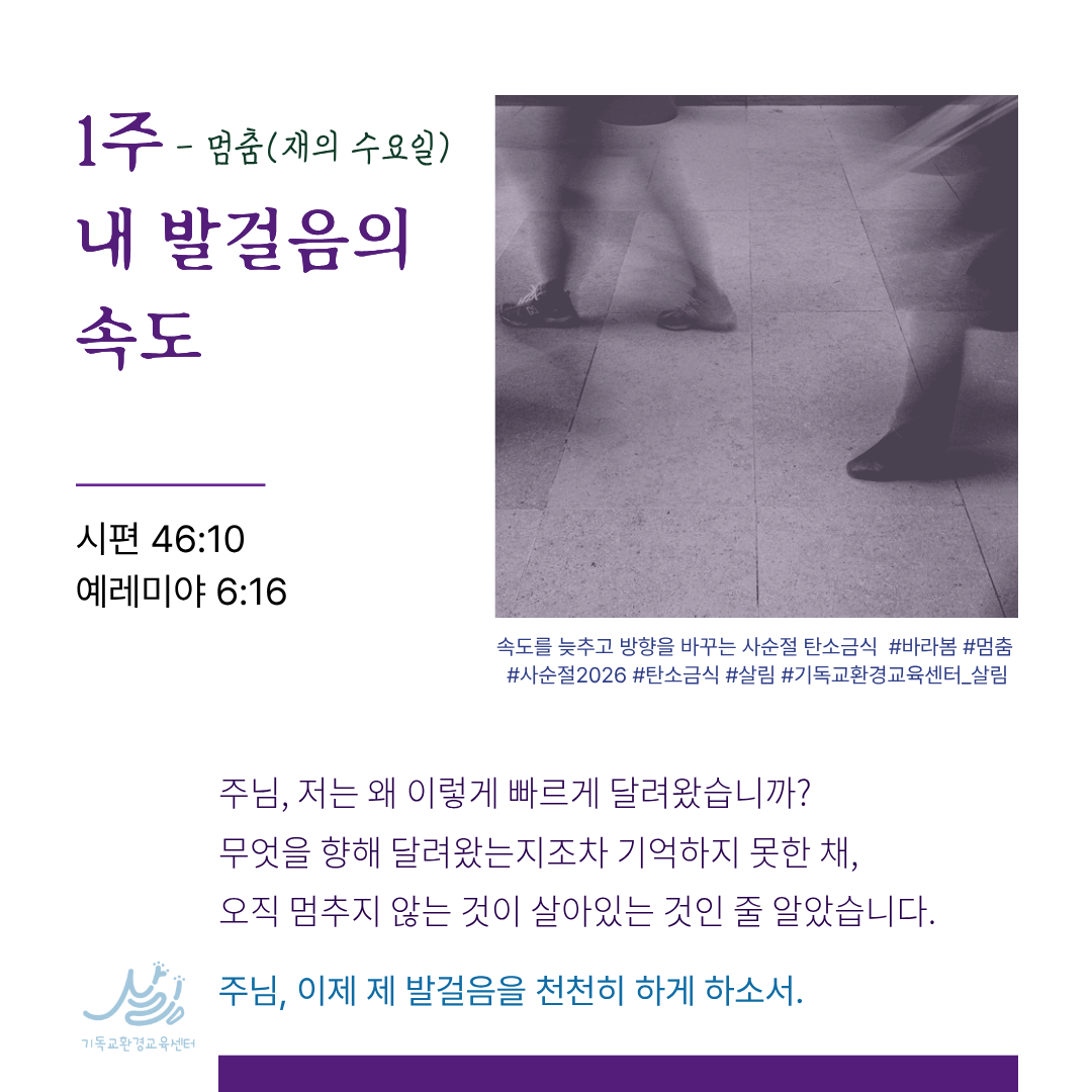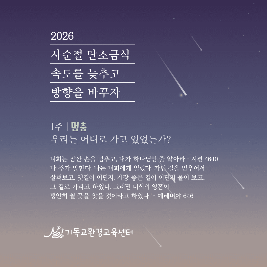 | 📢 2026 사순절 탄소금식 묵상실천카드 나눔 - 십자가 아래, 생명과 함께 (1) | 2026.01.24 |