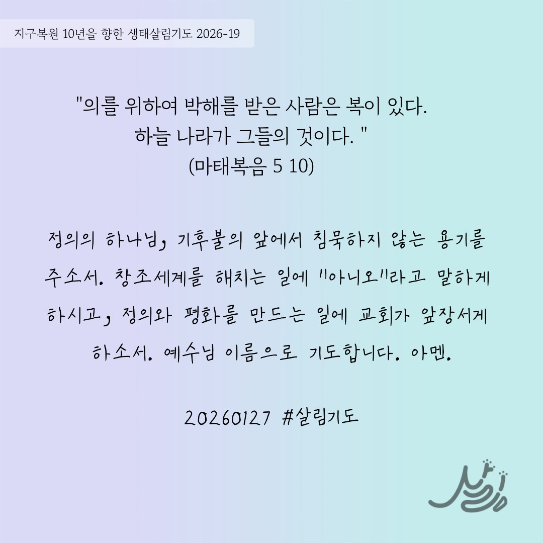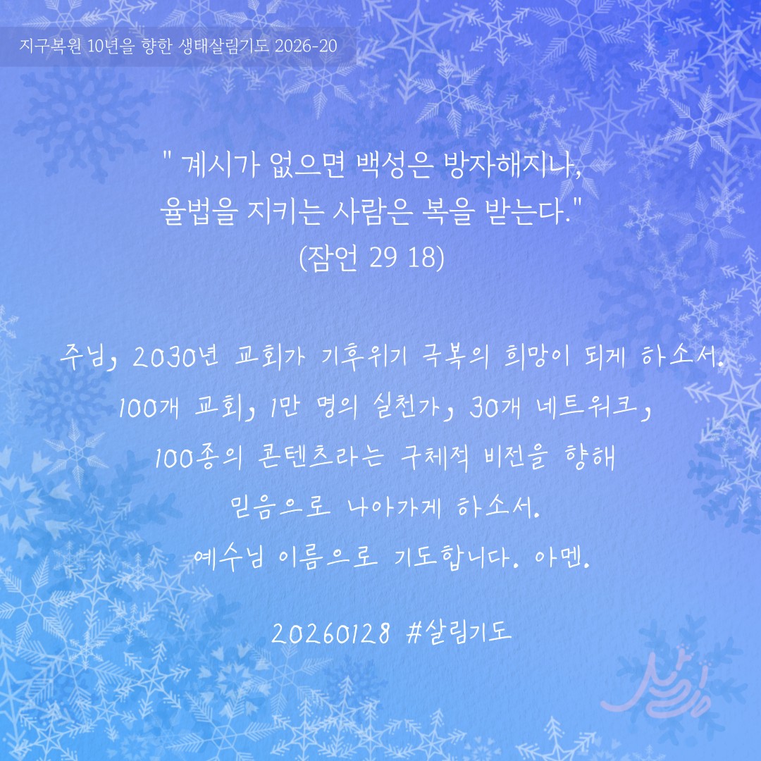 | 지구복원 10년을 향한 생태살림기도_2026년2월1주 (0) | 2026.01.31 |