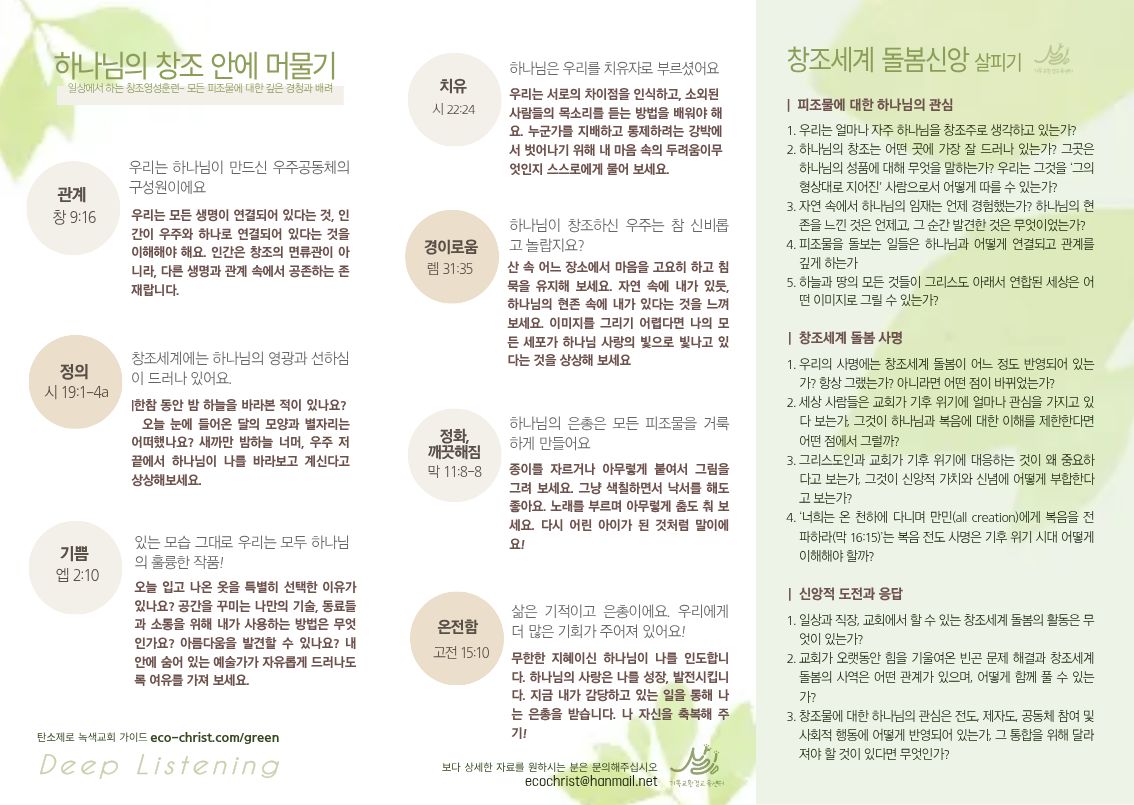 창조 영성 리트릿을 마무리하며 나누는 리플렛입니다.