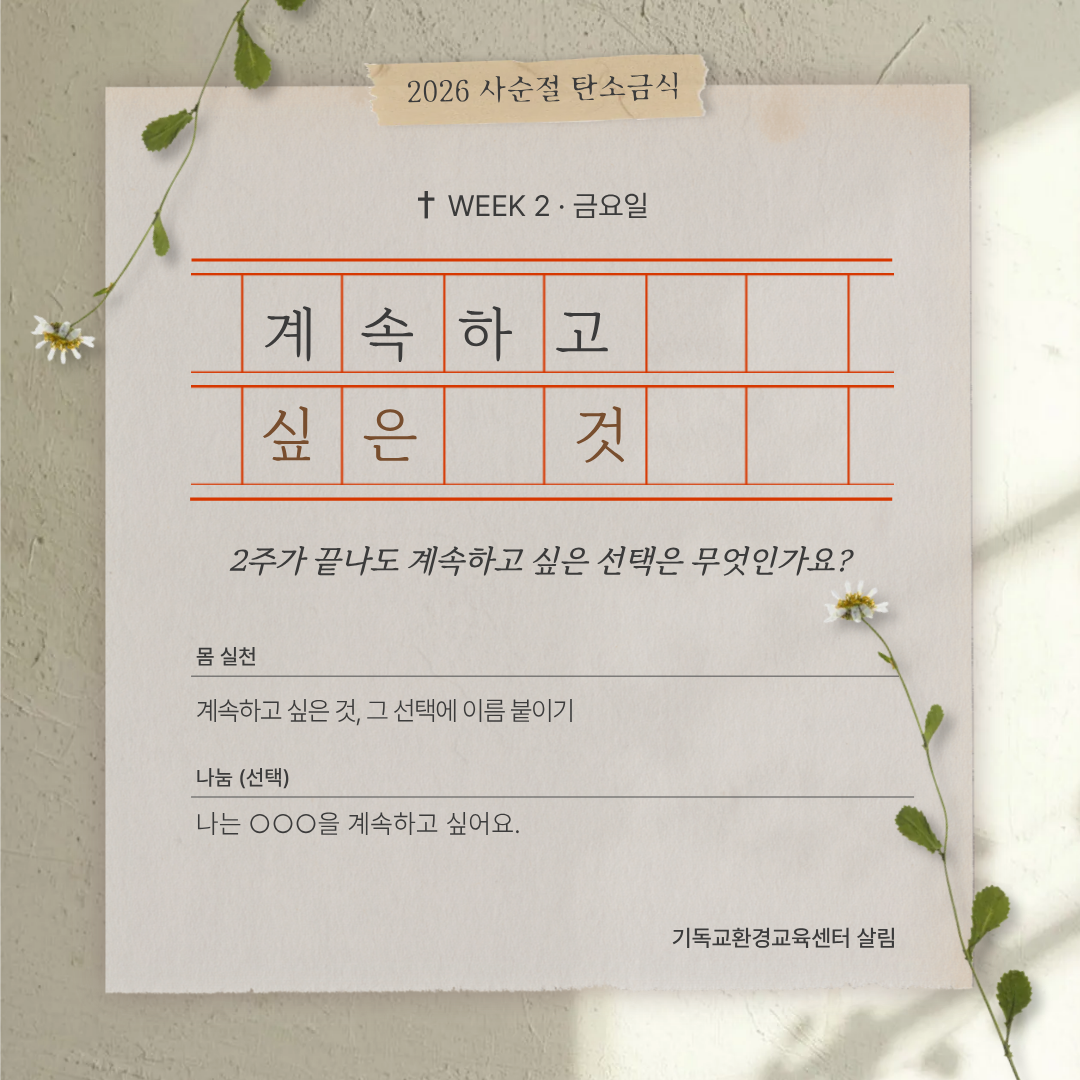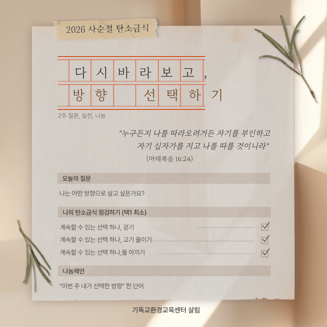 🍀 2026 사순절 탄소금식 묵상실천 캠페인 카드, 샘플과 함께 미리보고 신청하기 : https://eco-christ.tistory.com/2514