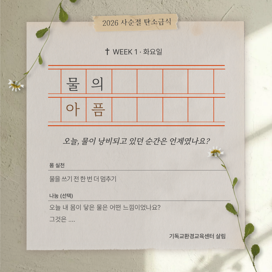 | 📢 2026 사순절 탄소금식 묵상실천카드 나눔 - 십자가 아래, 생명과 함께 (2) | 2026.01.24 |