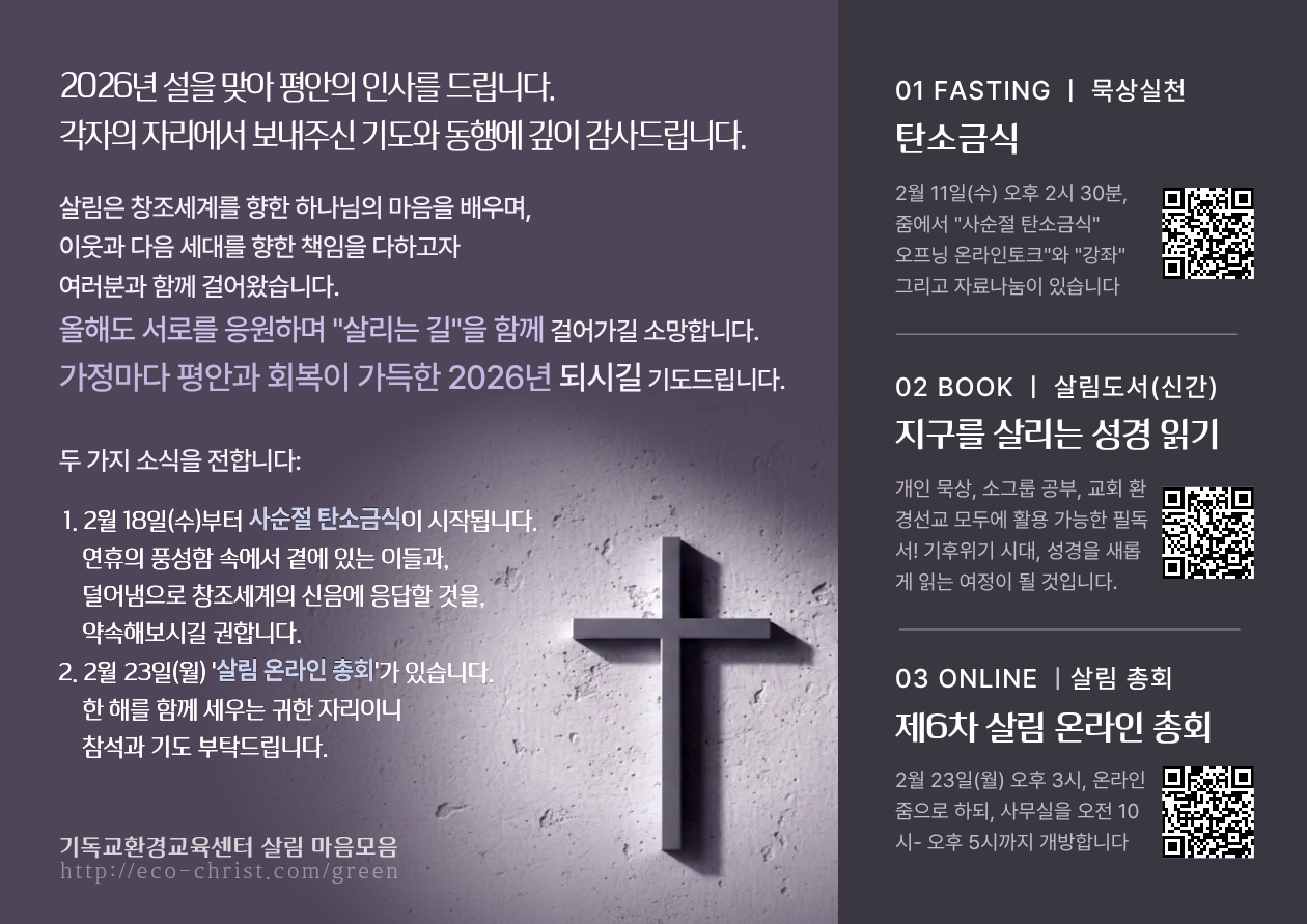 * 2026 기독교환경교육센터 살림 온라인 총회 : https://eco-christ.tistory.com/2557
