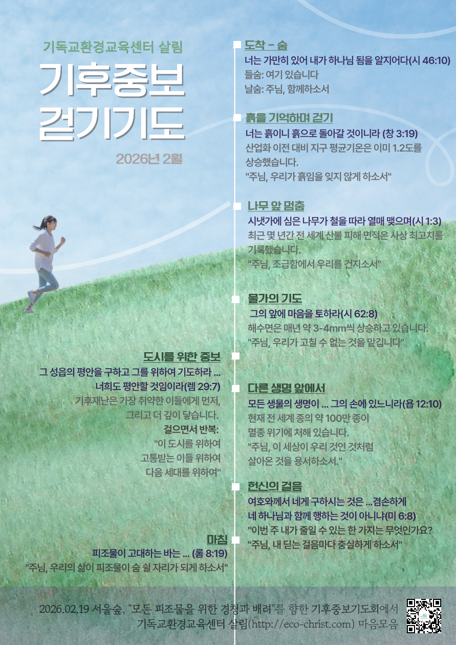 | 2026년, 우리 함께 기후중보기도의 여정을 시작해요!!! (0) | 2026.02.06 |