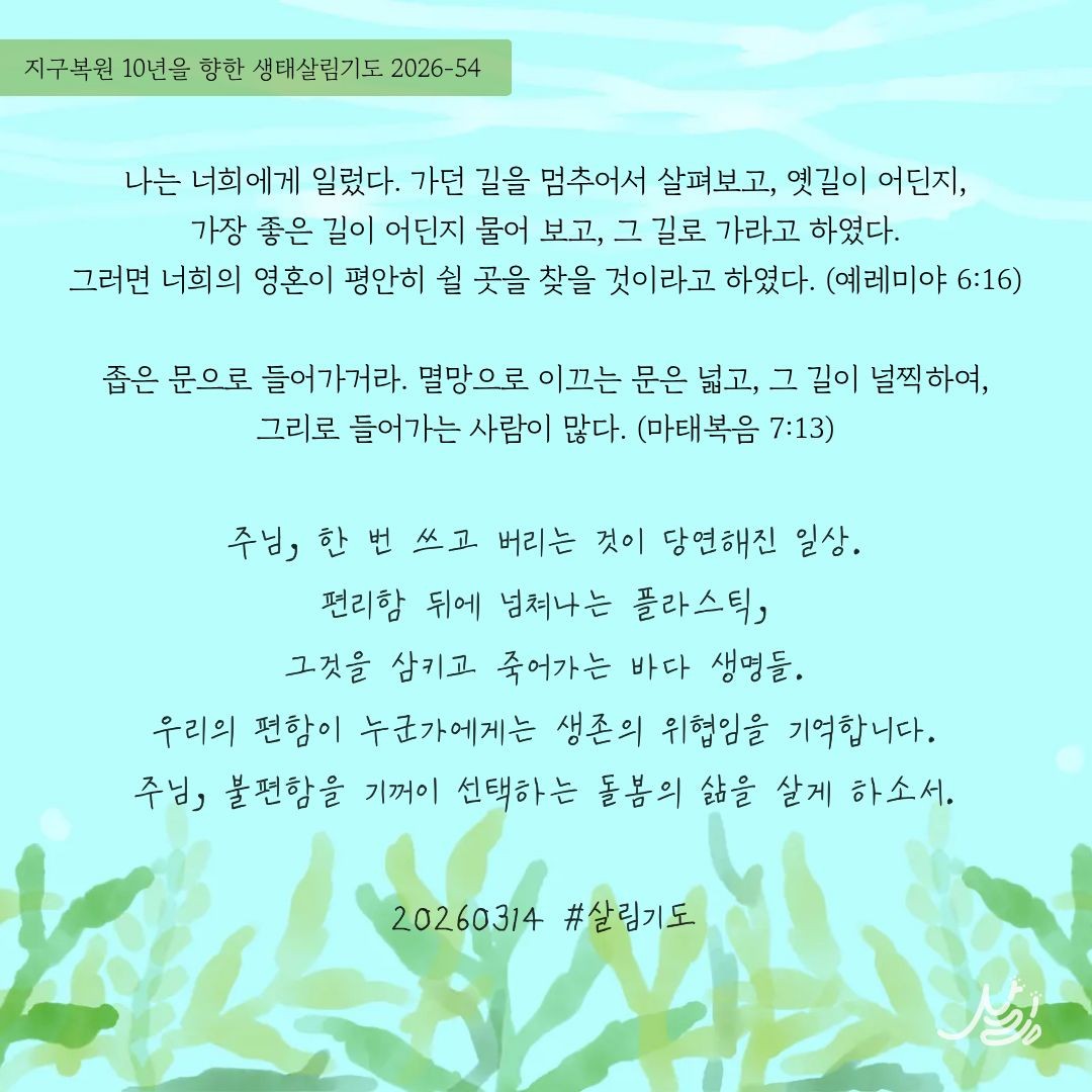 | 지구복원 10년을 향한 생태살림기도_2026년3월3주 (1) | 2026.03.16 |