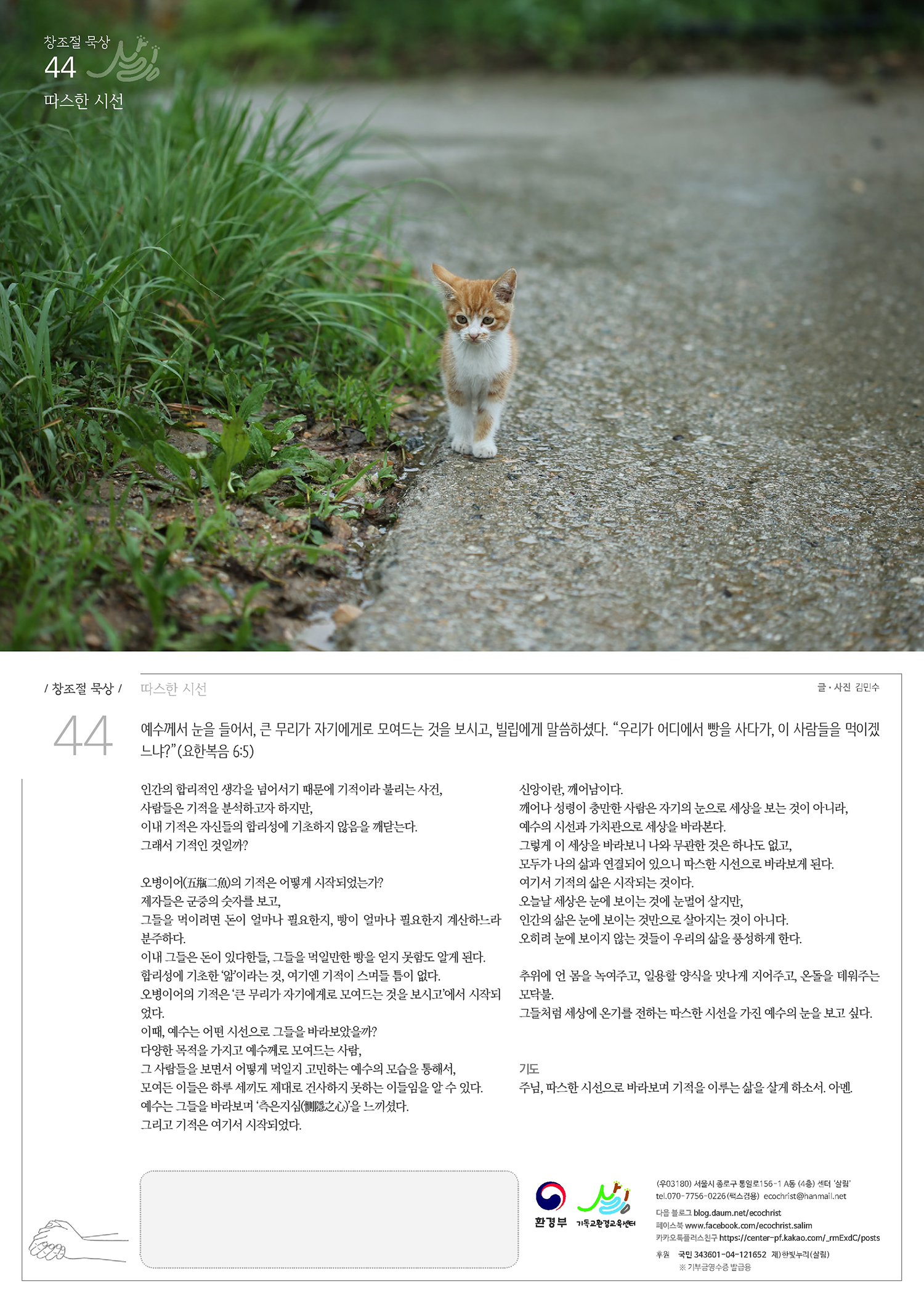 | 2020 창조절 묵상_45일(빈 틈)_#살림 (0) | 2020.11.05 |