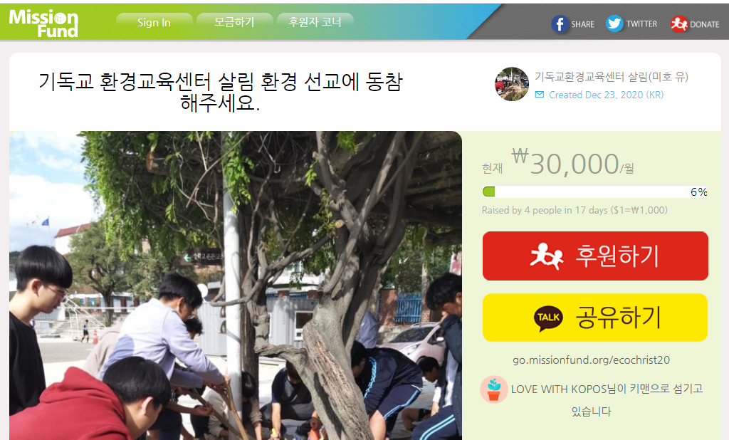 Click here to support 기독교 환경교육센터 살림 환경 선교에 동참해주세요.