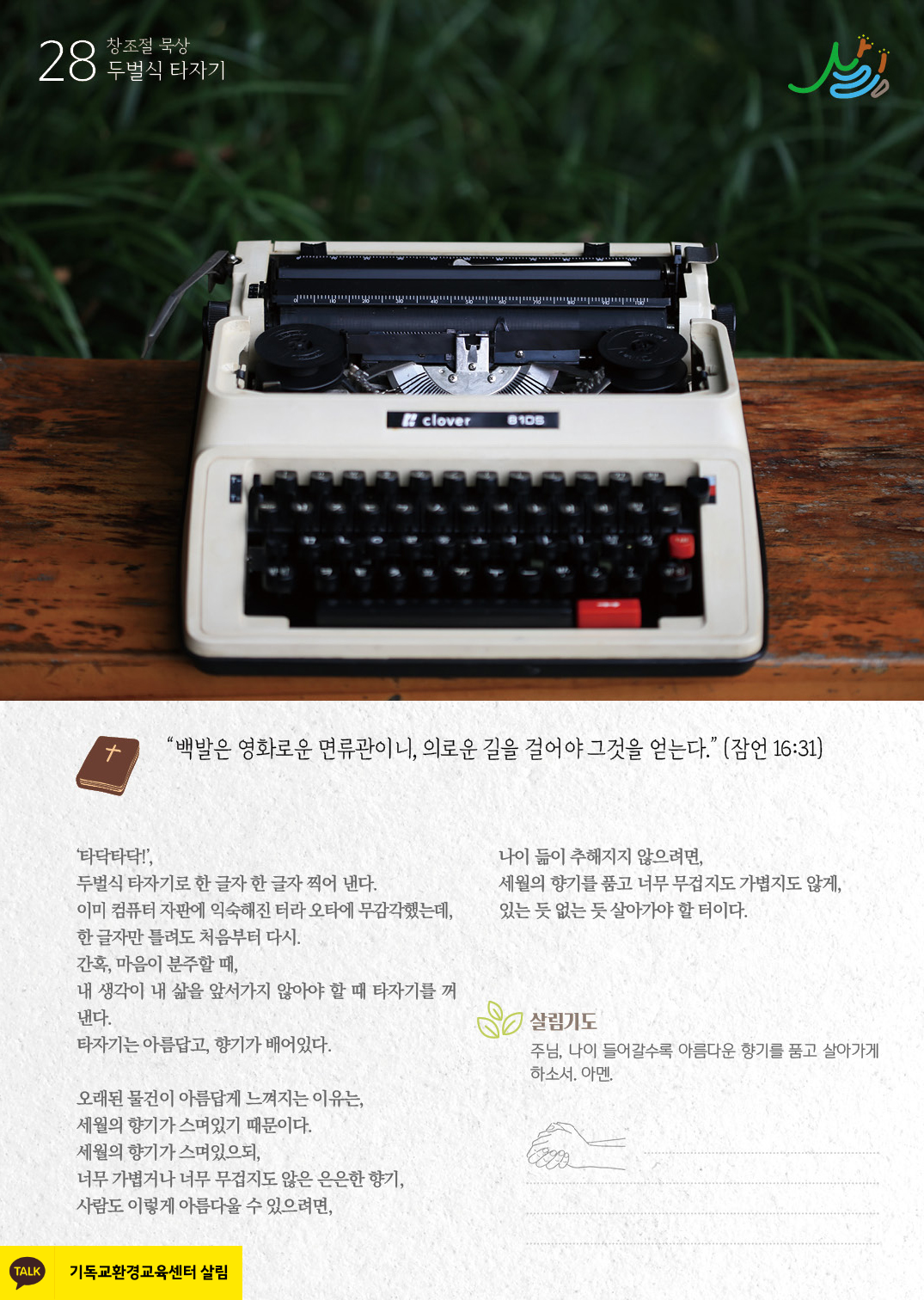 - 올해 창조절묵상은 이곳과 살림브런치(의 '2021 창조절묵상' https://blog.naver.com/ecohrist)에 동시 게재되며, 묵상집으로 소량 보급합니다. 낱장나눔은 희망자에게 추후 나눕니다.